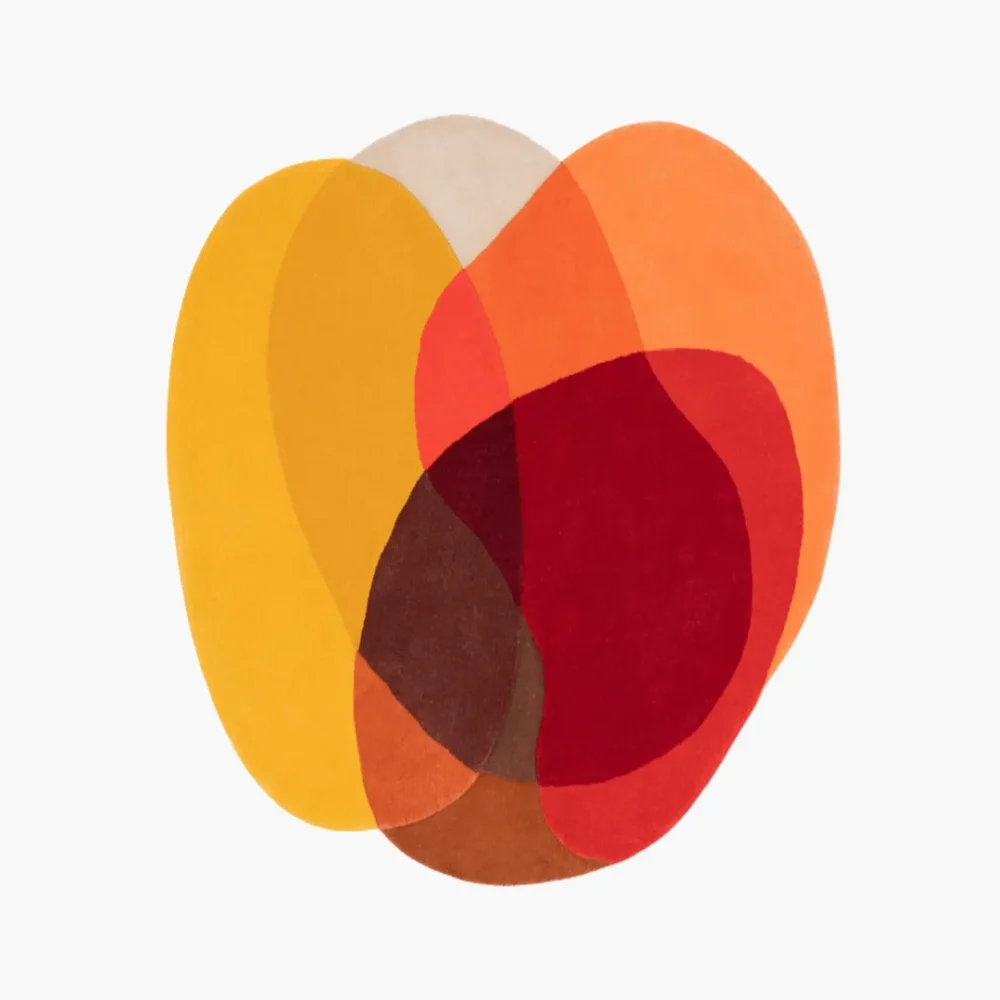 The Artisanal Materiality Area Rug features an abstract design with intricate textures, combining yellow, beige, and red in harmony. The pattern blends bold, fluid shapes and lines, creating a sense of movement and depth, and evoking a dynamic feel. Yellow adds vibrancy and energy, while beige offers a soft, neutral balance, and red provides richness and warmth.Key Features for Circle Area Rugs