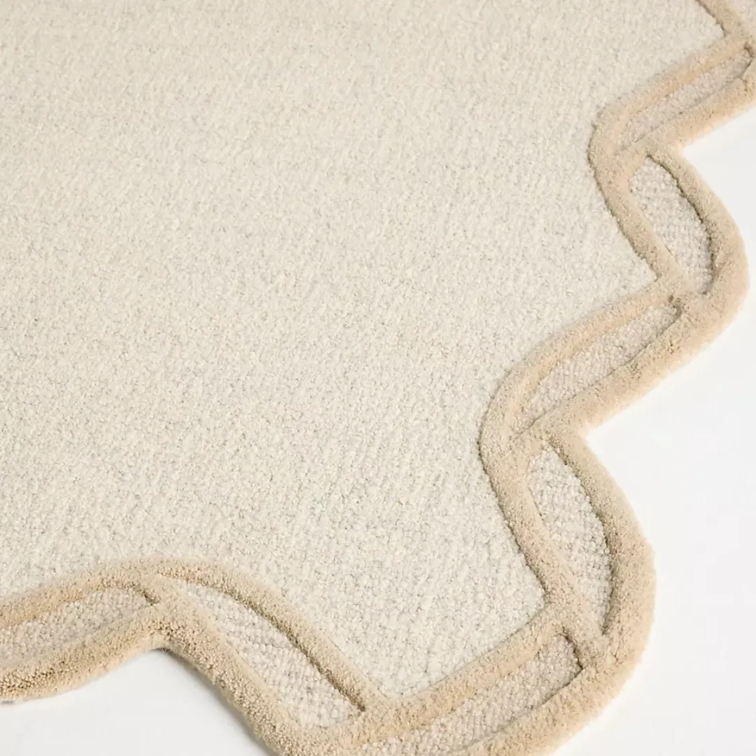 Beige Scallop Edge Hand Tufted Rug