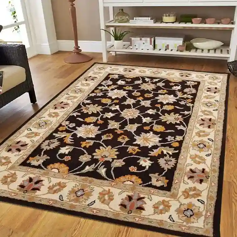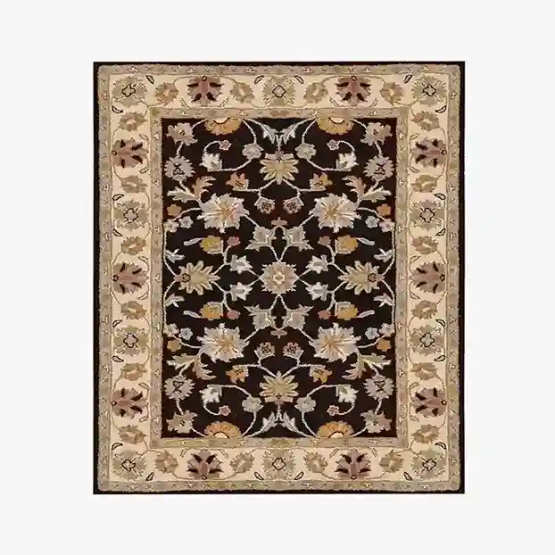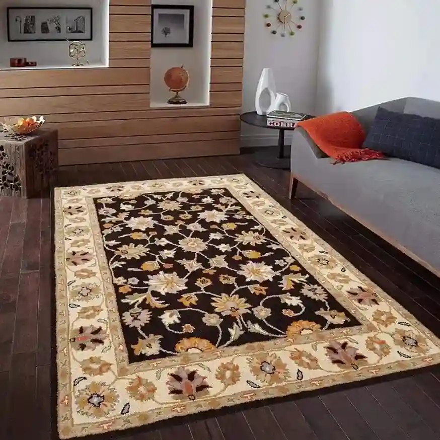 The Dark Dynasty Rug from Sneagear brings classic Persian artistry to your home. This stunning black traditional rug has a deep black field. It creates a dramatic backdrop for intricate, scrolling vines and floral medallions. We rendered the beautiful Persian-style rug’s details in rich, contrasting tones. It features cream, gold, and soft tan. A wide, detailed border perfectly balances the design. This frames the floral area rug and gives it a formal, finished look. Our skilled artisans craft this rug using the traditional hand-tufted technique. Each piece is meticulously made from 100% premium New Zealand wool, which offers a plush, dense pile and a luxurious feel underfoot. This high-quality wool is naturally resilient, flame-retardant, and stain-resistant, making it a practical and durable choice for high-traffic areas like a living room, dining room, or grand entryway. For more designs like this, browse our full range of Oriental Rugs.⚠️NOTE TO READ : All Products that we make are by clients request. If there’s a design similarity with an artist’s work of art or stuff, we don’t really know and there’s no intention to copying / imitating / plagiarize. Thank you⚠️