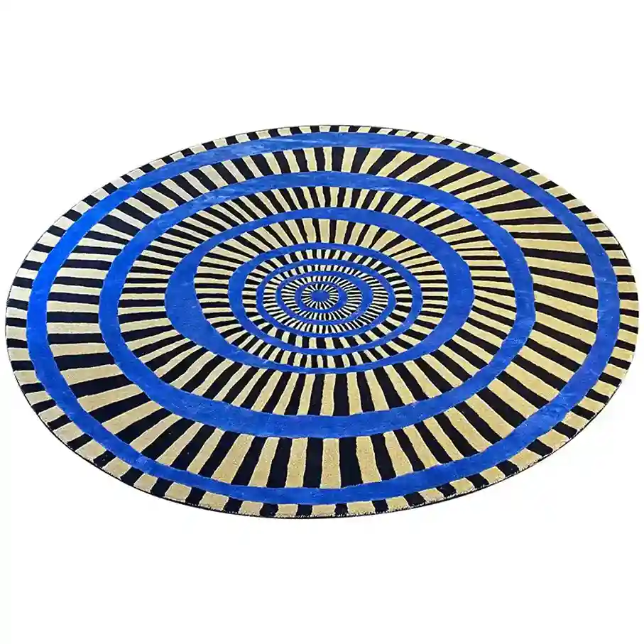 The Black Hole Round Rug displays a white base with a vibrant blue chess pattern on it. It is a symbol of infinite mystery, the center of attention, and luxury. This rug adds a sense of motion and energy to your home.Key Features for Blue Hole Circle Rug