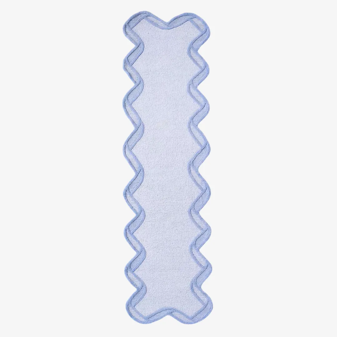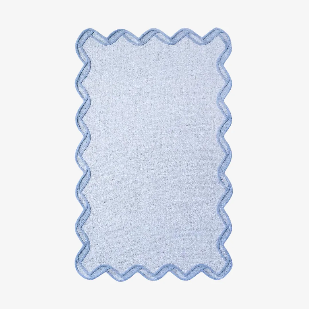 This rug’s beautiful blue color and flowing curves help your room to have harmony and lightness. Its scalloped edge adds a little originality without being overly dramatic.- Shape: Rectangular with Rinker-inspired wavy edge