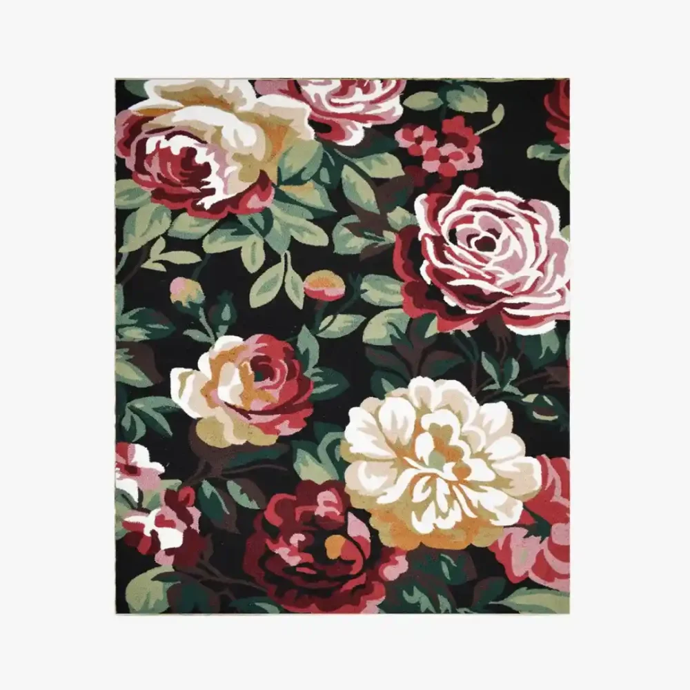 Bring nature’s beauty indoors with the Bold Floral Rug, a stunning statement piece featuring bold floral patterns on a rich, dark background. The intricate blooms in shades of red, cream, and green add depth and sophistication, making it a perfect addition to any modern or classic decor. For a dramatic layered look, pair it with Black Area Rugs to highlight the vivid floral design and create striking contrast. Made from high-quality materials, this rug offers durability and a soft, plush feel underfoot.Key Features of Floral Rug