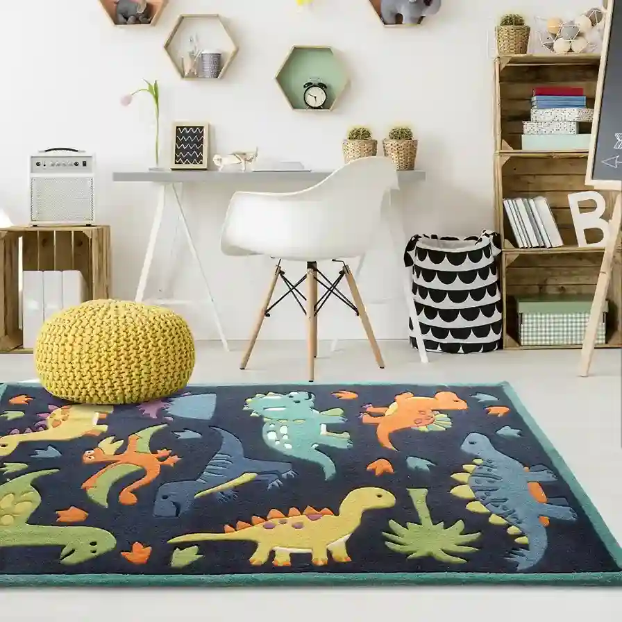 The Dino Explorer Rug takes you on a fun adventure to the world of dinosaurs. It’s perfect for anyone who loves dinosaurs and wants to add some excitement to their room!Key Features of Dinosaur Rug