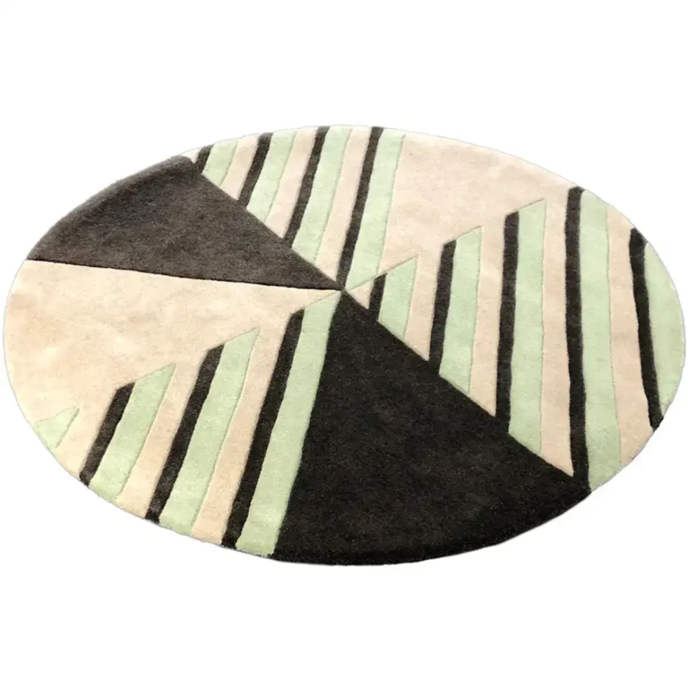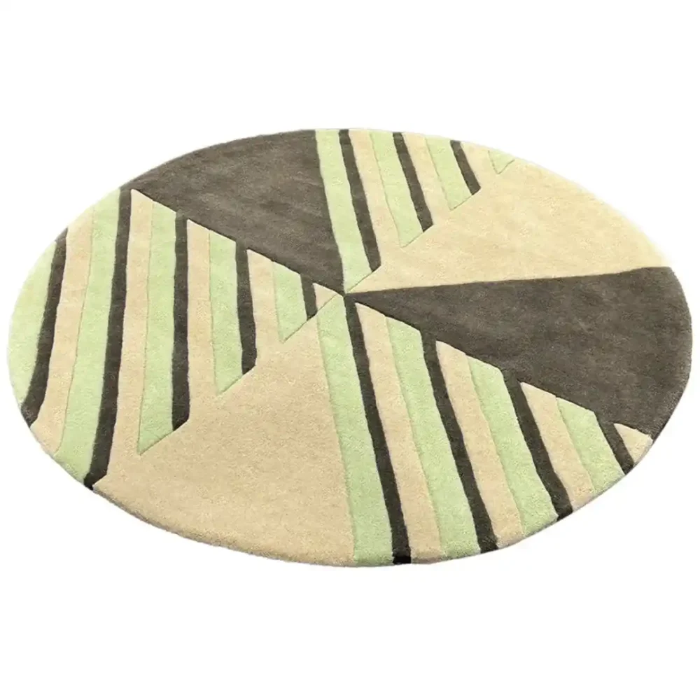 The Round Diamond Area Rug displays a beige base with a vibrant green and geometric pattern on it. It is a symbol of focus, balance, and luxury. This rug adds a sense of motion and energy to your home.Key Features for Round Area Rug