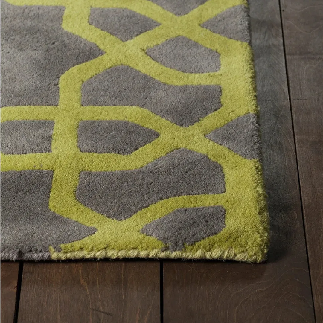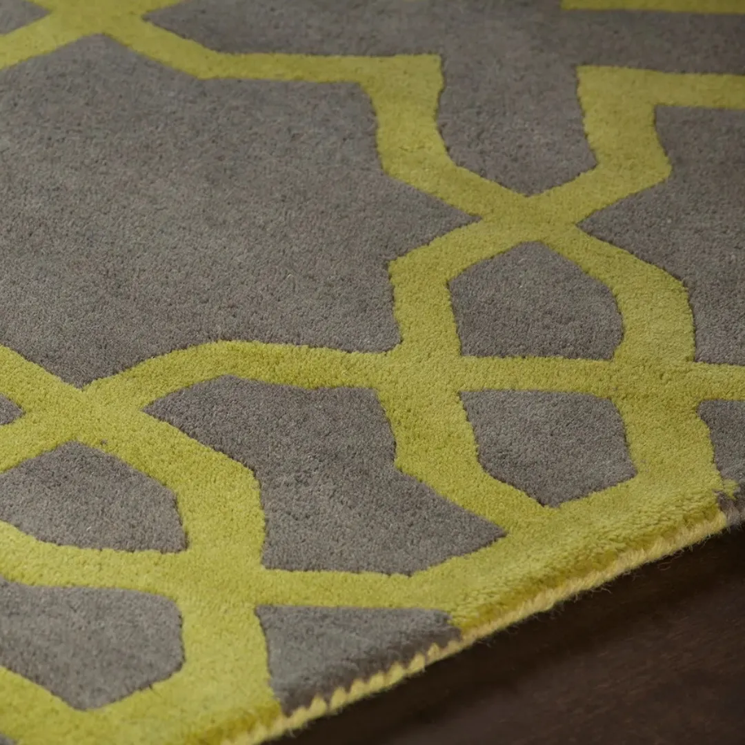 The Golden Hex geometric wool rug helps to bring simplicity and boldness to your space. This rug design features a Moroccan-inspired geometric pattern in contrasting gray and yellow tones. It is hand tufted by Skilled artisans using premium organic wool. This rug is perfect for anyone who loves a structured look that still feels warm and personal.Key Features of a Gray Rug