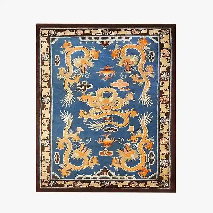 The Oriental dragon rug is a masterpiece of tradition and artistry. Inspired by classic Chinese motifs, this oriental area rug showcases golden dragons dancing across a deep blue background, symbolizing power and prosperity. Handcrafted with premium materials, it offers a rich texture and a luxurious feel. Whether placed in a study, living room, or grand hallway, this rug becomes the focal point of any space. Available in multiple sizes to fit your décor needs.