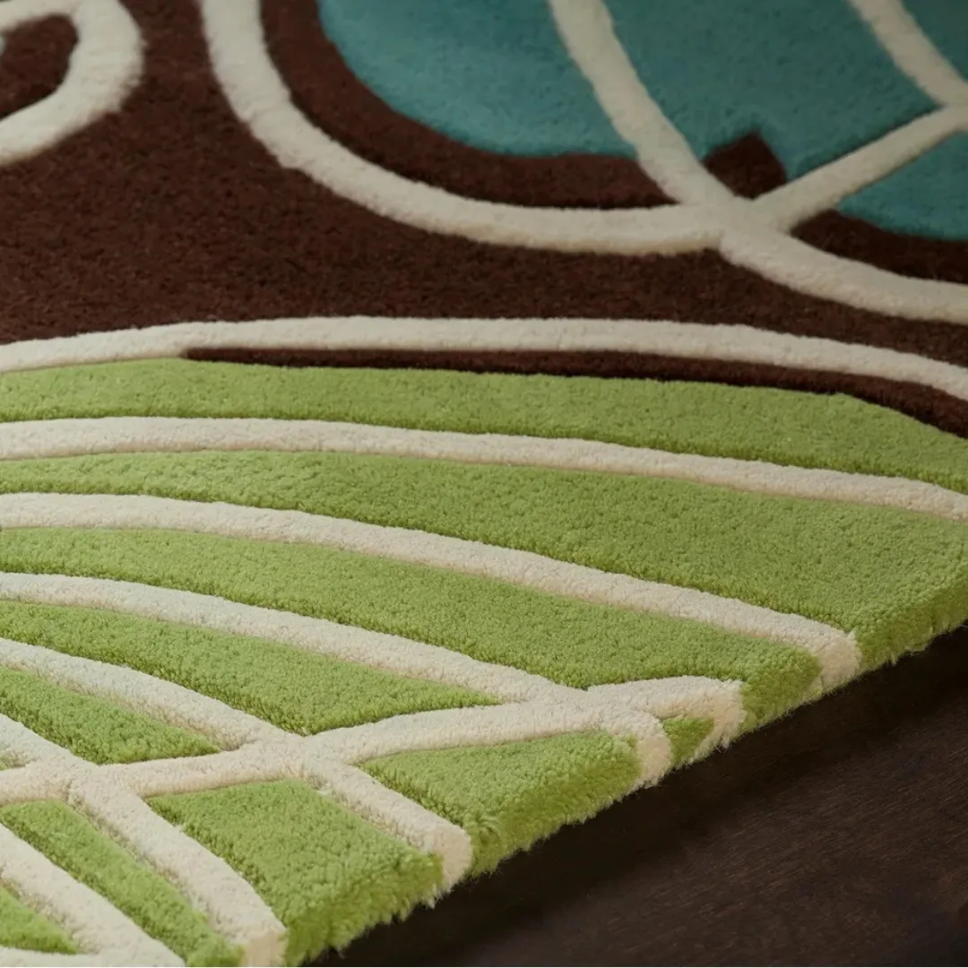 The Leafy Flow brown rectangle area rug helps to bring simplicity and boldness to your space. This rug design features a beautiful pattern of blue and green leaves on a rich brown background. It is hand tufted by Skilled artisans using premium organic wool. This rug is perfect for anyone who loves a structured look that still feels warm and personal.Key Features of Brown Rug