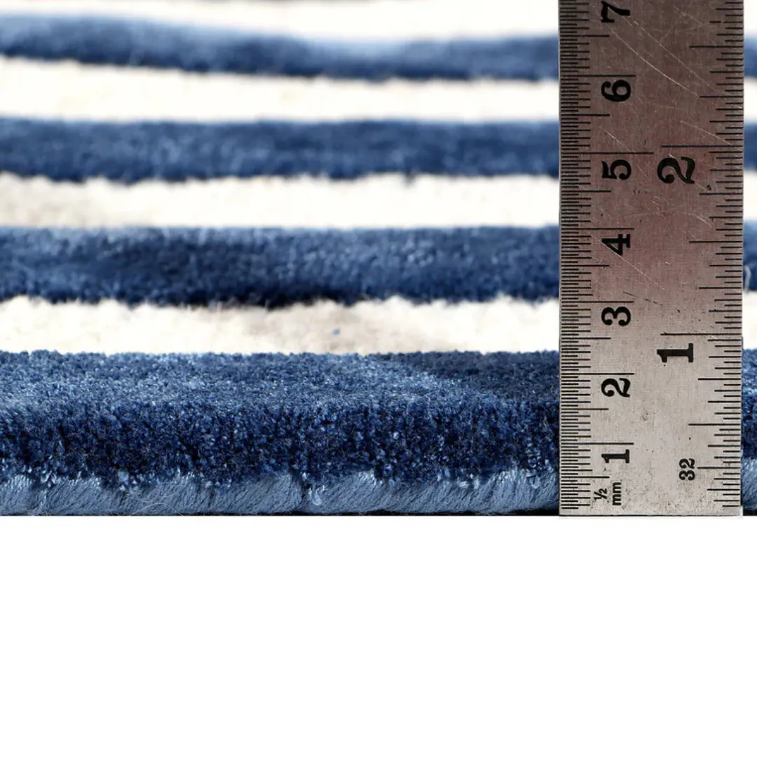 This freeform rug adds sculptural movement and energy to your decor. Its rich navy tones and looping pattern bring dynamic visual interest. It also fits seamlessly into our blue rugs and modern rugs collections.Care Instructions