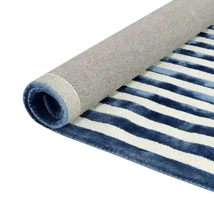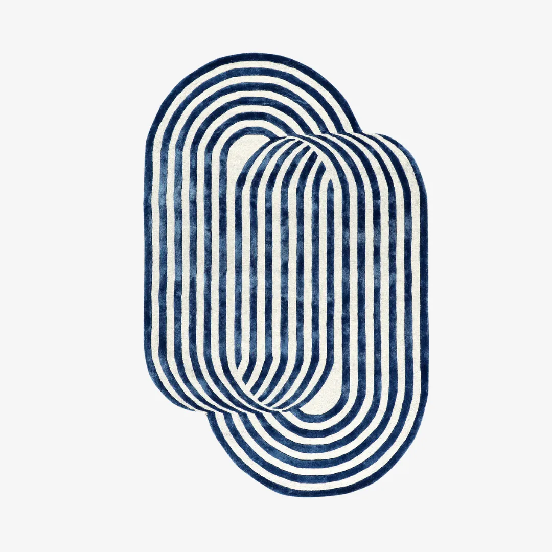 The Loops Blue Rug – Hand Tufted Rug is an artistic statement piece crafted for design-forward interiors. Featuring a striking combination of deep navy and cream, its overlapping ovals and looped stripes create a playful rhythm across a non-rectangular silhouette. Made with 100% New Zealand wool, this rug delivers both texture and personality, making it ideal for spaces that embrace modern or contemporary aesthetics. For a cohesive layered look, pair it with white rugs to balance its bold navy tones with soft, neutral accents.Key Features of the Blue Rug