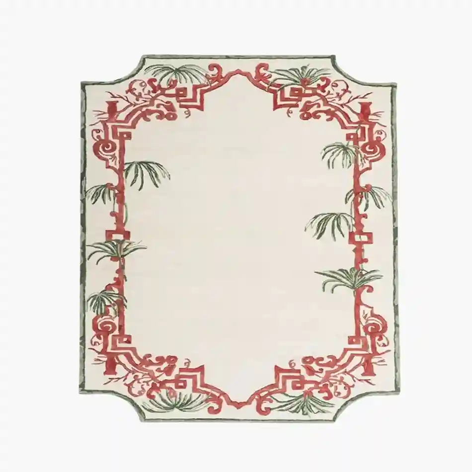 The Marguerite Flower Rug displays a beige base with a vibrant red flower on the rug. It is a symbol of focus, flower, and luxury. This rug adds a sense of motion and energy to your home.Key Features for Flower Rug