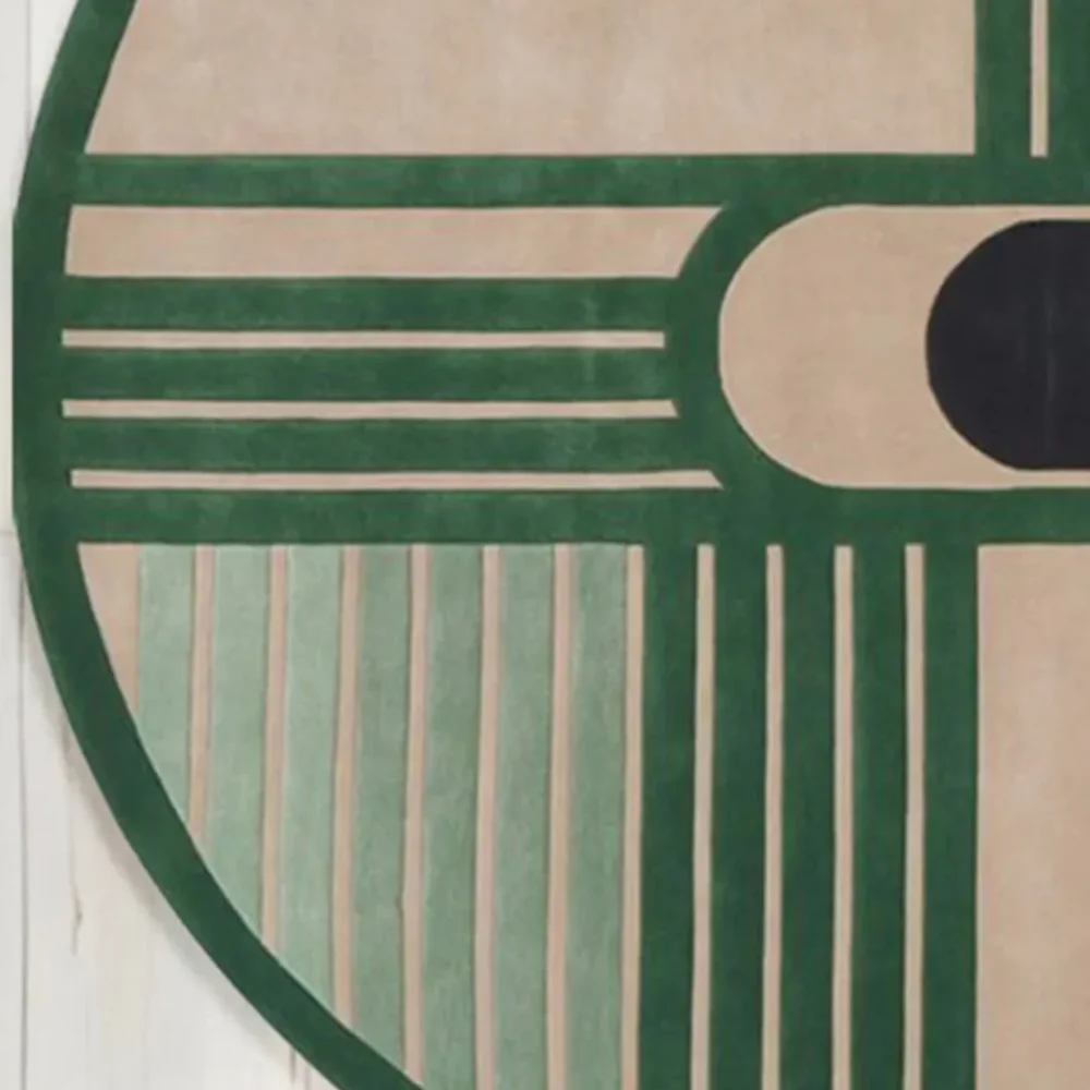 The Central Park Round Rug displays a beige base with a vibrant green, brown, and black central park theme. It is a symbol of focus, balance, and luxury. This rug adds a sense of motion and energy to your home.Key Features for Central Park Circle Rug
