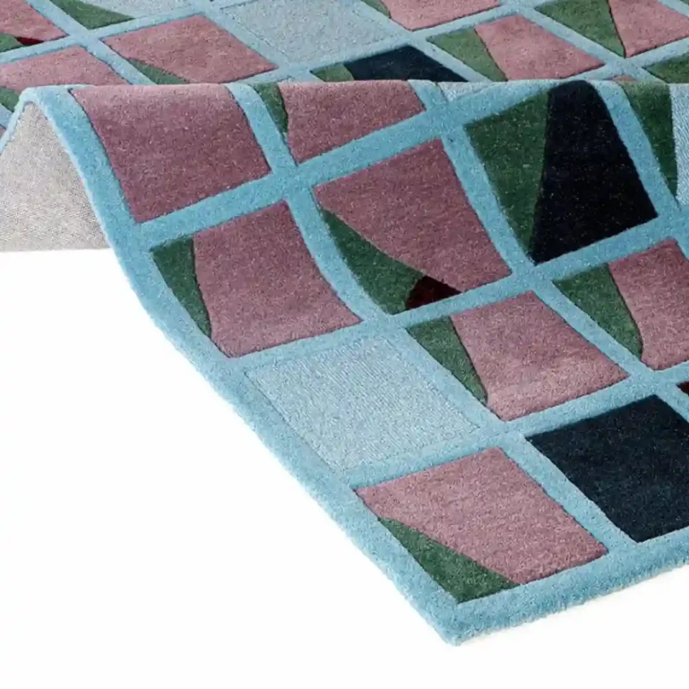 Transform your space with this multi-color geometric rug, designed to bring a dynamic and contemporary aesthetic to any interior. The intricate grid pattern with contrasting blue, pink, green, and black hues creates a visually striking composition, perfect for those who appreciate modern design.