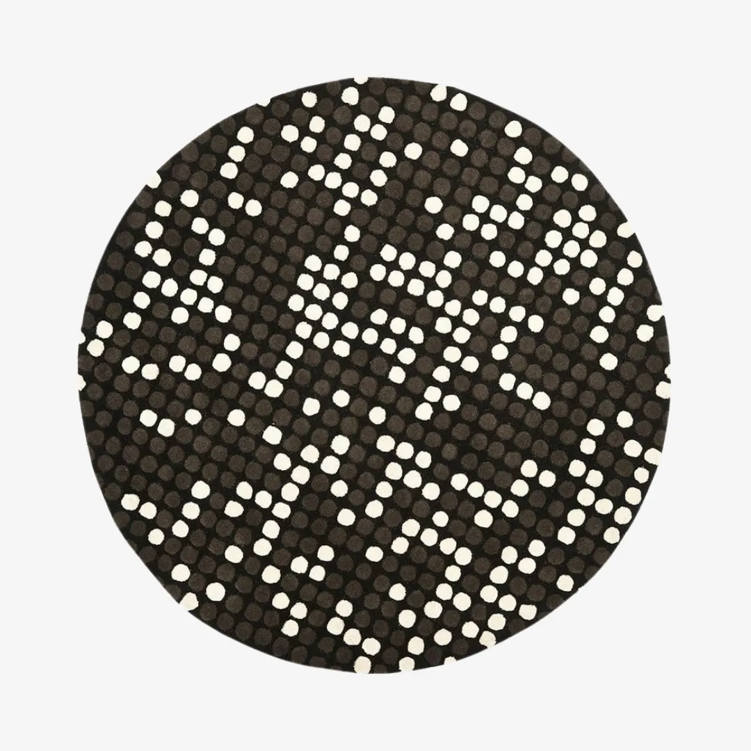 The Nocturn Area Rug displays a black base with vibrant green and white dots. It is a symbol of focus, balance, and luxury. A perfect choice for those looking to incorporate the sophistication of white area rugs into a bolder setting, this rug adds a sense of motion and energy to your home.Key Features for Area Rug