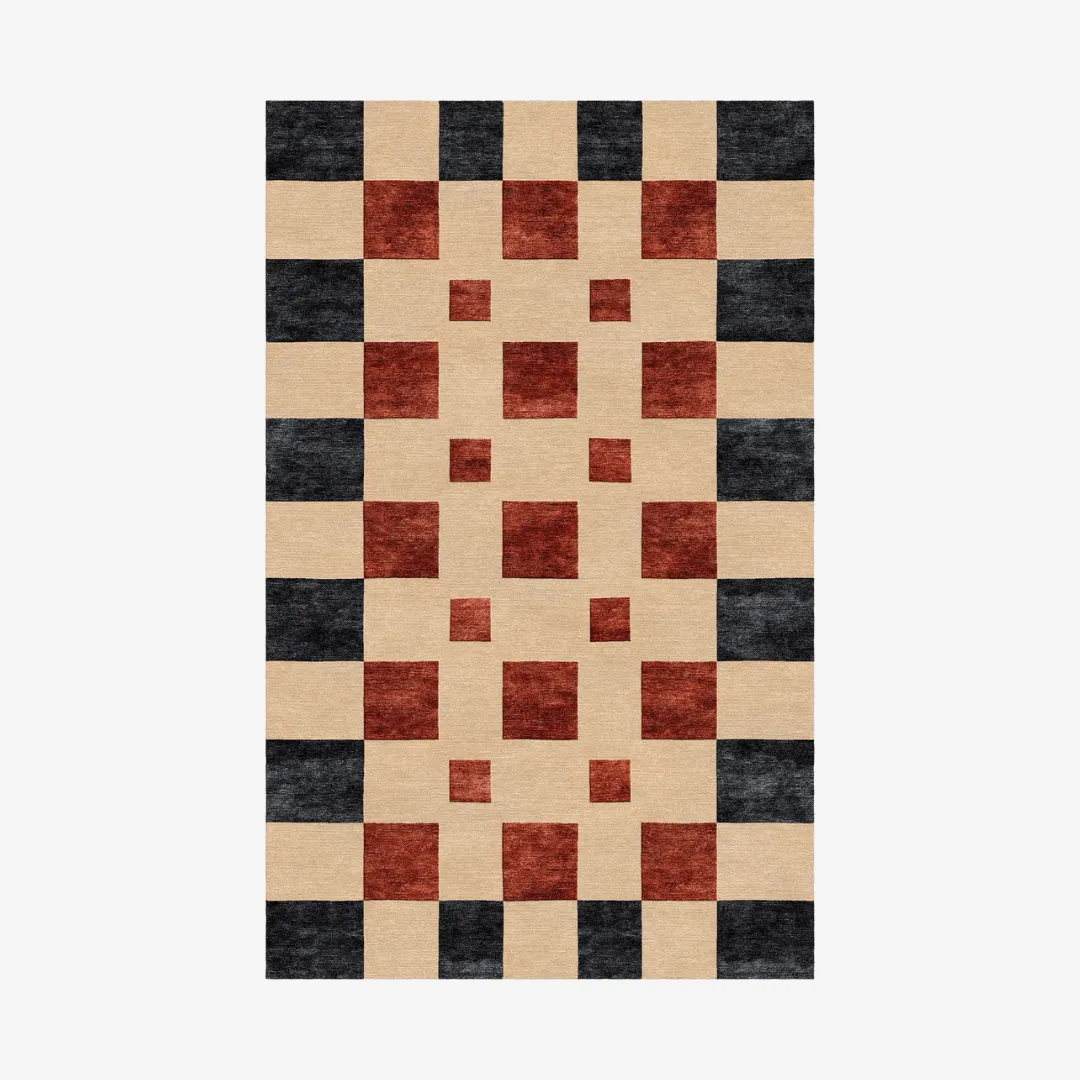Add a bold accent to your space with the Nordic Checkered Rug, hand tufted from premium New Zealand wool for a luxurious feel. Featuring a striking mix of red, black, and brown tones in a traditional check design, this rug brings a refined edge to any room. Whether placed in the living room, bedroom, or dining room, this checkered area rug effortlessly balances warmth with geometric appeal. Its vivid yet earthy palette suits both modern and rustic interiors.Key Features of Checkered Rug