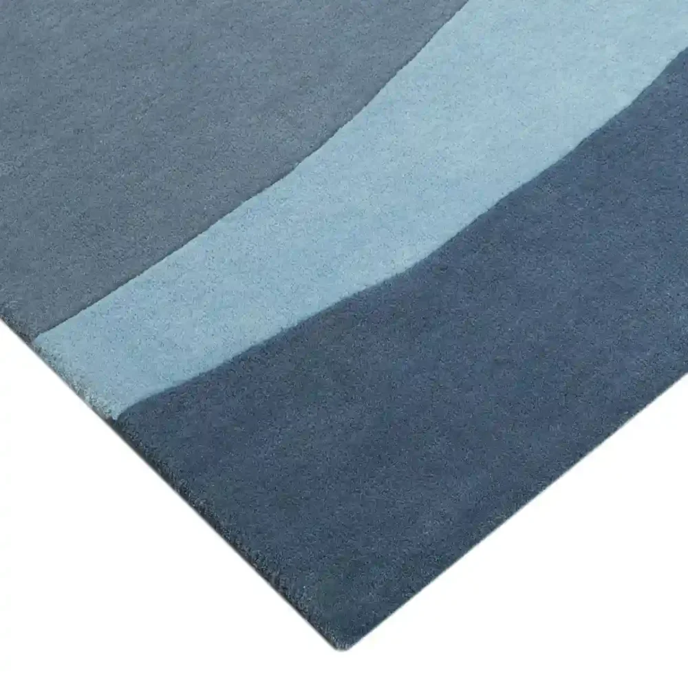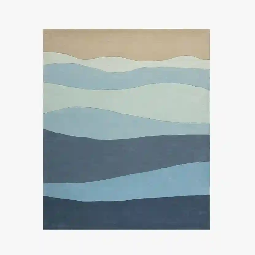 The Ocean Waves Rug is inspired by the rhythmic beauty of the sea. Its layered blue and beige tones create a serene and flowing effect, perfect for coastal, contemporary, or minimalist interiors.