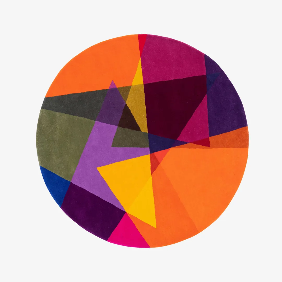 The Palace Suite Area Rug displays a gray base with a vibrant orange and red suite design. It is a symbol of focus, balance, and luxury. This rug adds a sense of motion and energy to your home.Key Features for Round Suite Area Rug