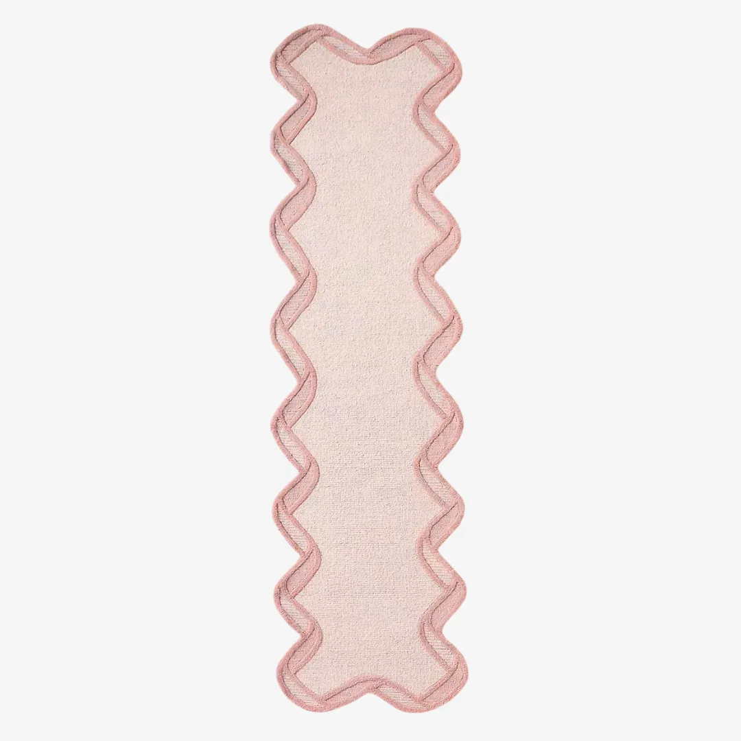 This rug’s gentle curves and warm pink hue accentuate without overpowering your decor. This is a timelessly appealing sweet accent piece.- Shape: Rectangular with Rinker-inspired wavy edge