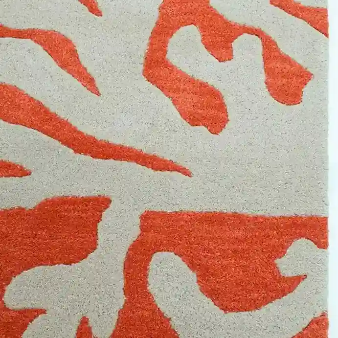 The Polaris Area Rug displays a gray base with a vibrant Orange and White Polaris pattern. It is a symbol of focus, balance, and luxury. This design not only adds a sense of motion and energy to your home but also complements modern white area rugs and neutral décor styles with ease.Key Features for Area Rug