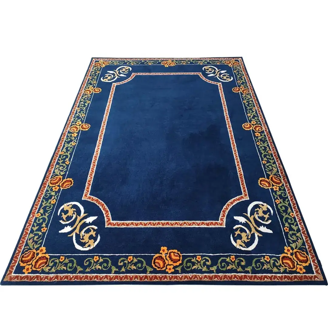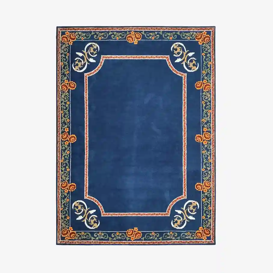 The Royal Mirage Rug – Hand Tufted Rug instantly adds elegance and depth to any room. Made from 100% New Zealand wool, this rug features a rich blue center framed by detailed orange and green motifs. The colors work together to create a striking contrast, blending tradition with modern luxury. Skilled artisans carefully hand tuft each rug, ensuring long-lasting quality and artistic value. As a result, every piece feels unique and intentional.Key Features of the Royal Mirage Rug