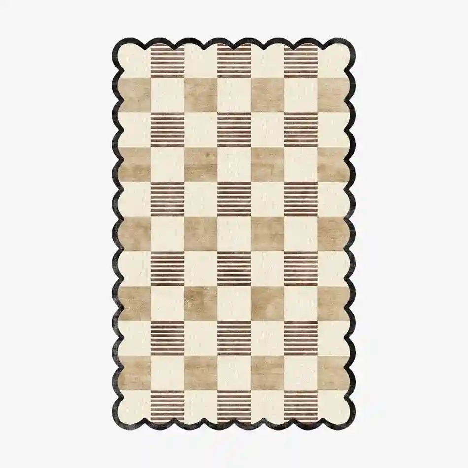 The Sandstone Checkered Rug brings timeless style to your space with its beige and brown plaid pattern framed in a black border. Hand tufted from 100% premium New Zealand wool, this medium-pile rug offers softness and durability. Whether you’re styling your living room, bedroom, or dining room, this checkered rug adds a cozy yet sophisticated touch. Its check design is versatile enough to complement modern, rustic, and minimal interiors. For a balanced layered look, pair it with white rugs to brighten the space and highlight the contrast of the plaid pattern.Key Features of Checkered Rug