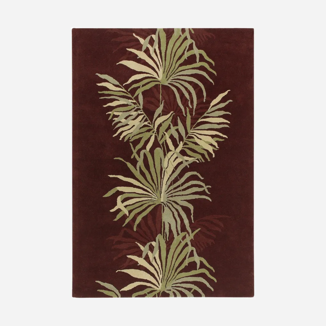 The Tropical Fern floral wool rug helps to bring simplicity and boldness to your space. This rug design features a beautiful tropical fern design, with delicate green leaves against a rich burgundy background. It is hand tufted by Skilled artisans using premium organic wool. This rug is perfect for anyone who loves a structured look that still feels warm and personal.Key Features of Red Rug