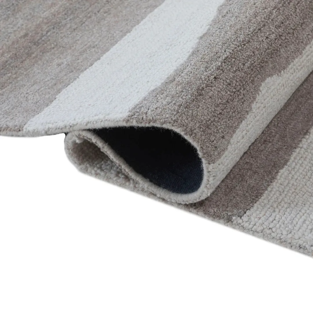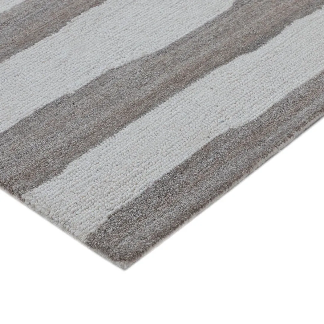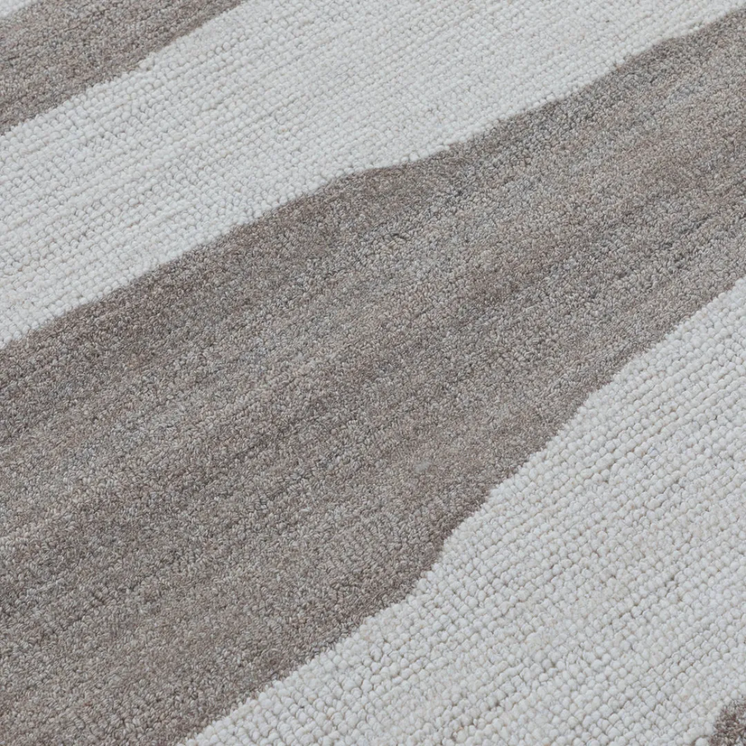 For a cool, modern vibe, the Wavy Brown Stripes Hand-Tufted Rug combines soft lines with earthy tones. Its freeform horizontal stripes in ivory and warm browns give your room a hand-painted appearance that accentuates natural flow. For a laid-back, layered home, match this rug with white carpets or other natural textures.Key Features of Brown Stripe Rug