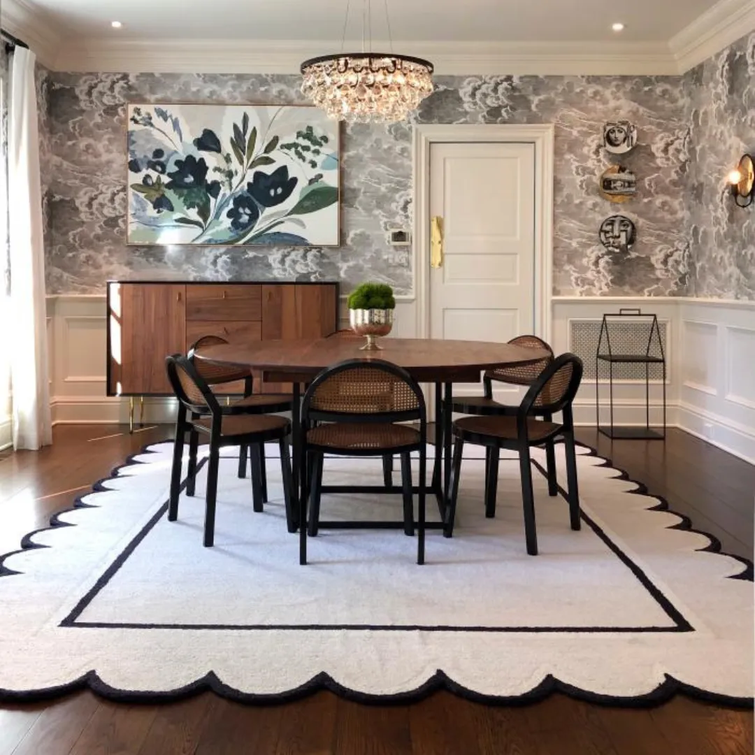 The White Scallop Edge Hand Tufted Rug accentuates and contrasts with your room. It keeps basic and modern while adding whimsical character with a soft white backdrop and strong black scalloped edges. Ideal for Scandinavian, traditional, and eclectic homes, this hand-tufted rug gives just enough accent to stand out without overpowering your decor.Key Features of White Scallop Rug