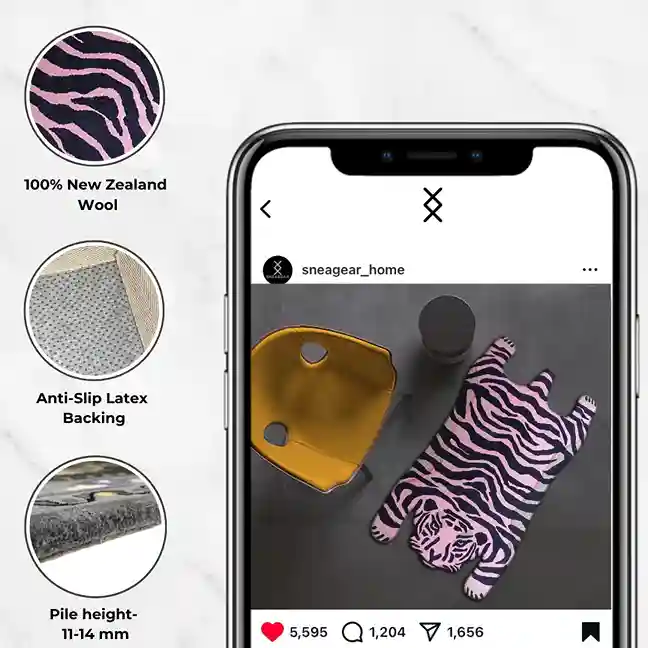 The Pink Diamond Tiger Rug features an animal print with black eyes, set on a soft base. This design adds a touch of strength and wisdom to your home. Our stripped tiger rug is a one of a kind creation.Key Features for Tibetan Tiger Area Rug