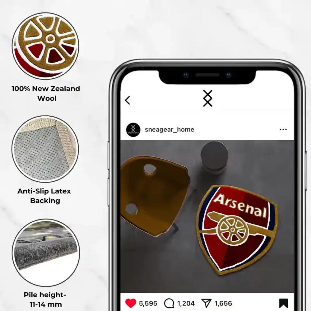 Our Arsenal Football Club Logo Rug brings team pride into your space, creating a dynamic and energized atmosphere for any fan. If you’re missing the ‘Wow’ factor in your space, this hand-tufted rug is for you! Tried and tested, this EPL soccer team logo design mat complements any modern or contemporary furniture style.