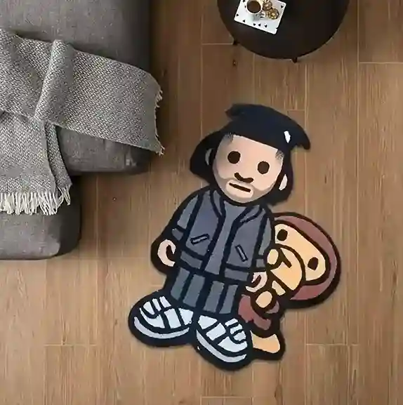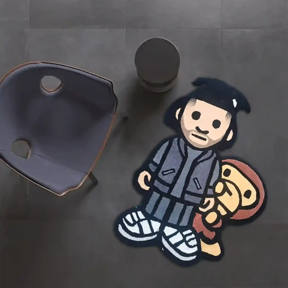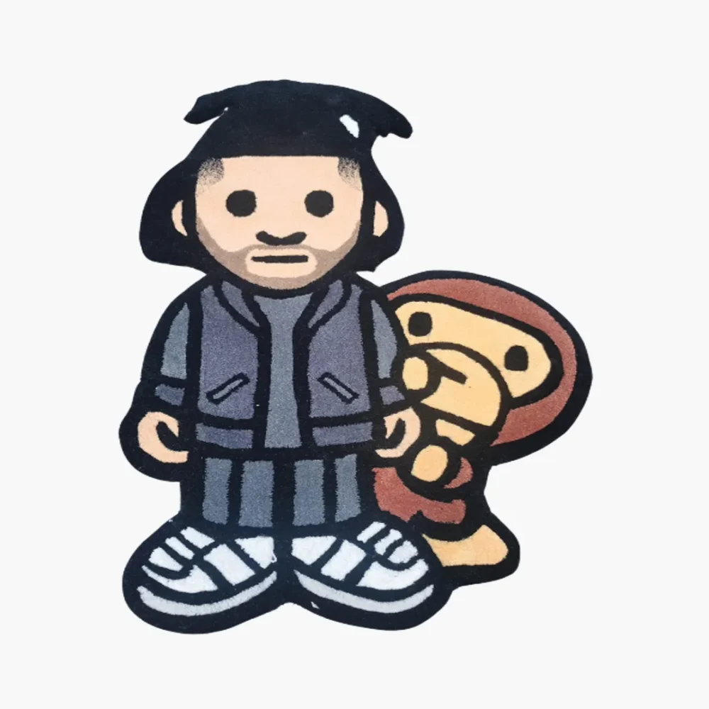The Weeknd, a Canadian singer and songwriter, is renowned for his chart-topping album “After Hours,” featuring the hit single “Blinding Lights.” The Weekend X Monkey Rug, inspired by his distinctive style, is a handmade piece that enhances various wall colors and complements modern or contemporary furniture styles. Display it on the floor or as wall art to infuse your space with a touch of musical elegance.Key Features of Baby Rapper Weekend Rug