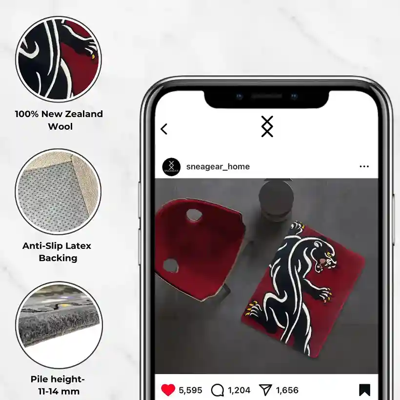 The Climbing Panther Area Rugs feature an animal print with white ears, set on a soft base. This design adds a touch of strength and peace to your home. Our climbing panther rug is a one of a kind creations.Key Features for Panther Area Rugs