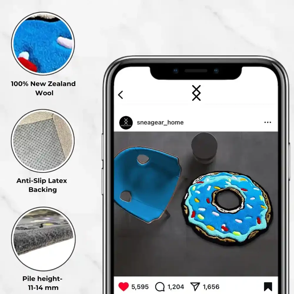 Here are some key features of this Food rug;- Design: Inspired by the classic donut.