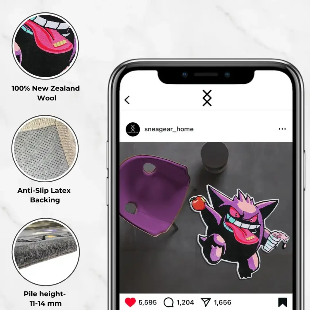 Our Gengar Pokemon Area Rug infuses your decor with playful spookiness, creating a fun and mysterious ambiance with its detailed design. If you’re missing the ‘Wow’ factor in your space, this handmade rug is for you! Tried and tested, this Pokemon-design mat complements any modern or contemporary furniture style.