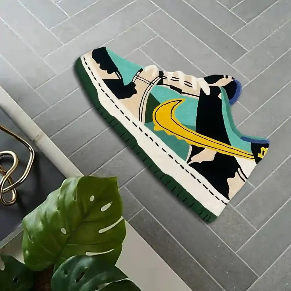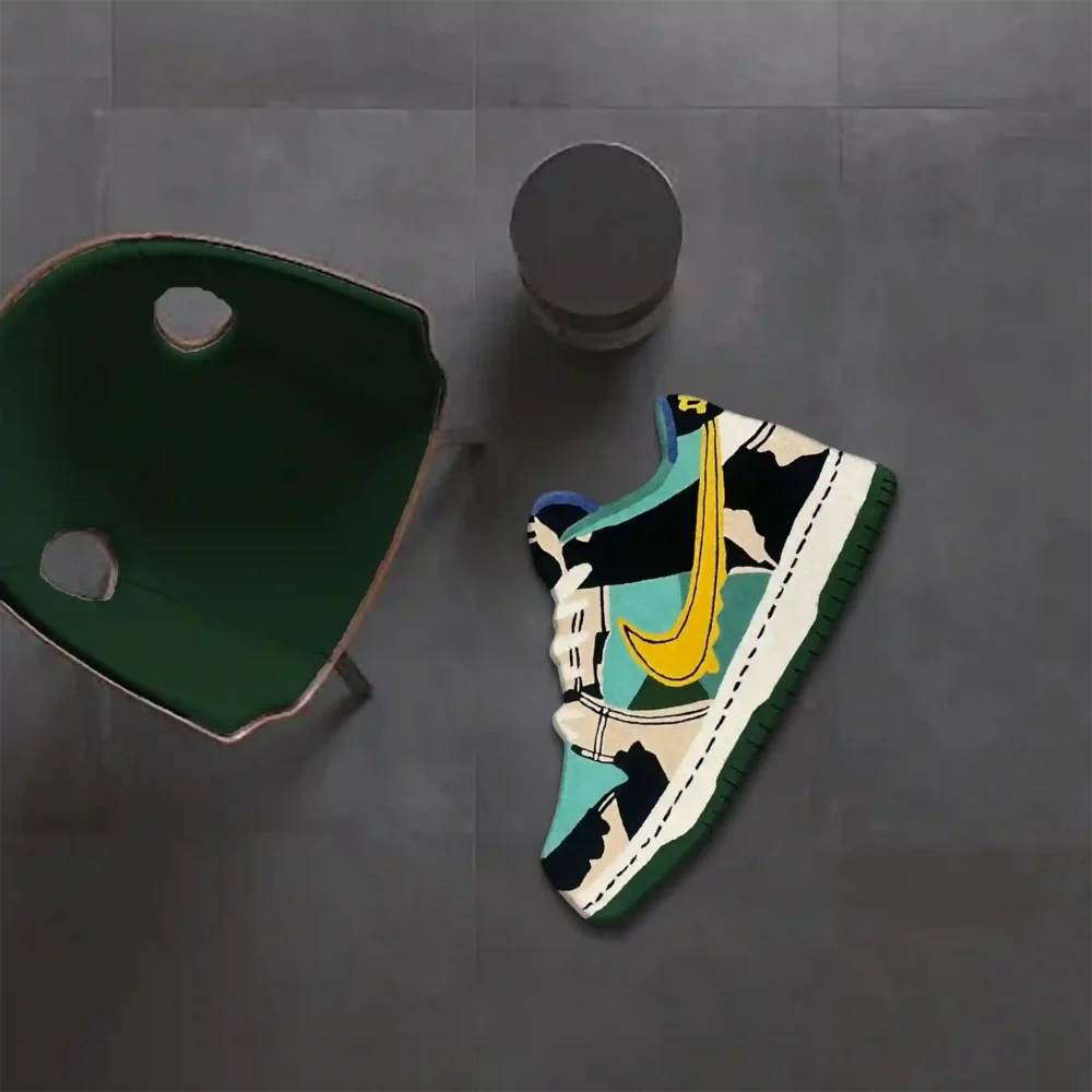 Our Green Yellow SB Dunk Low Chunky Dunky Sneaker Rug energizes your room with bold colors, making it a standout feature in any stylish home. If you’re missing the ‘Wow’ factor in your space, this handmade rug is for you! Tried and tested, this sneaker-design area mat complements any modern or contemporary furniture style.