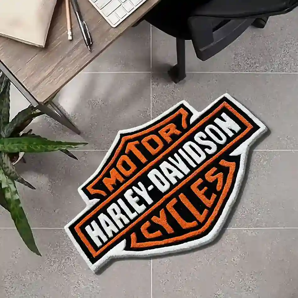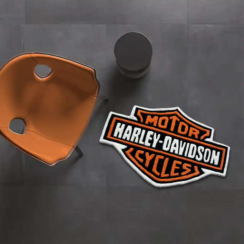 Our Black and Orange Harley Davidson Logo Rug channels the spirit of the open road, bringing iconic motorcycle culture to your space. Harley-Davidson Logo is an iconic American motorcycle manufacturer known for its powerful, V-twin engine bikes and distinctive design. As part of the motorcycle industry, which falls under the broader powersports and automotive sectors, the Harley-Davidson logo represents freedom, independence, and craftsmanship. It embodies the spirit of the open road and resonates with riders who value the brand’s rich heritage.