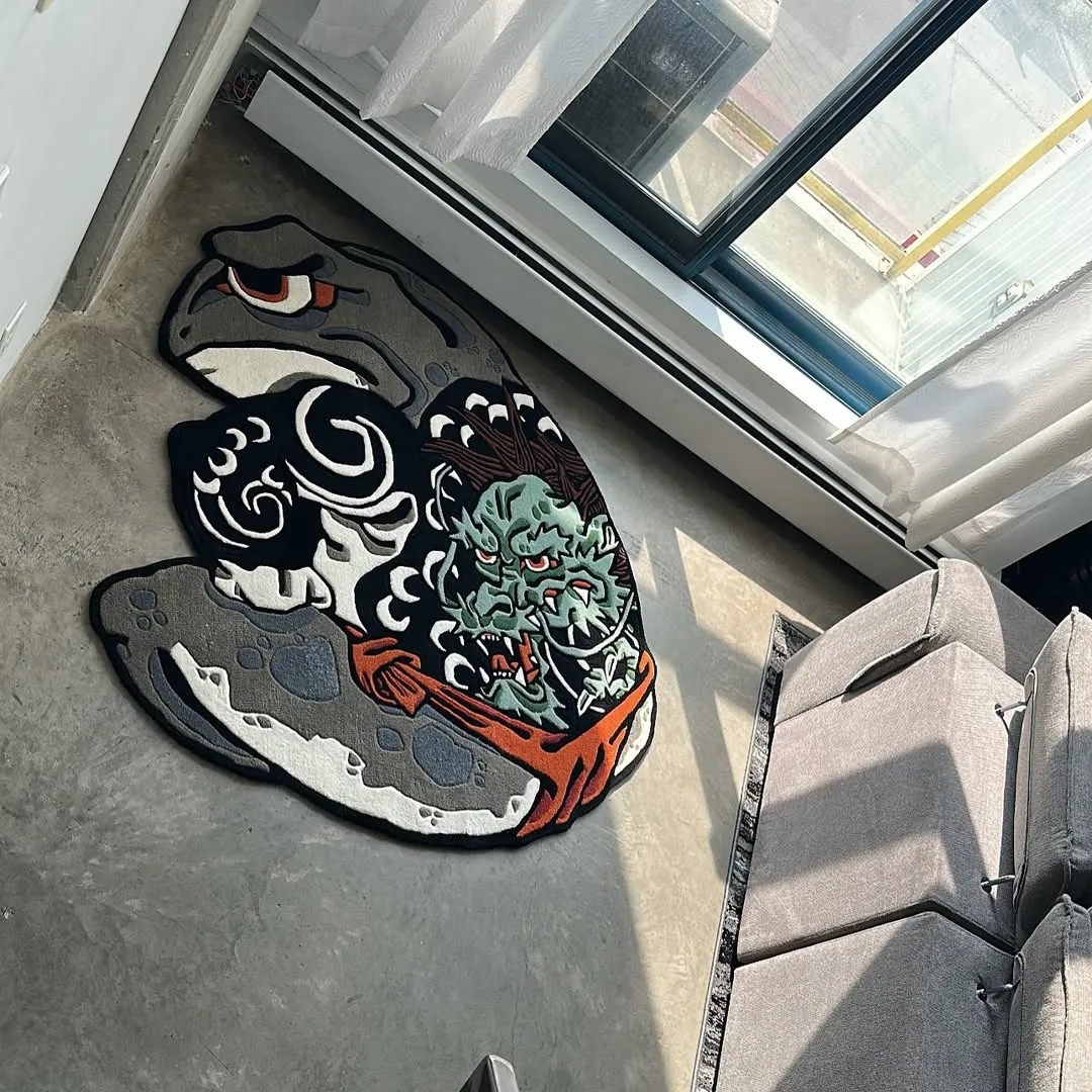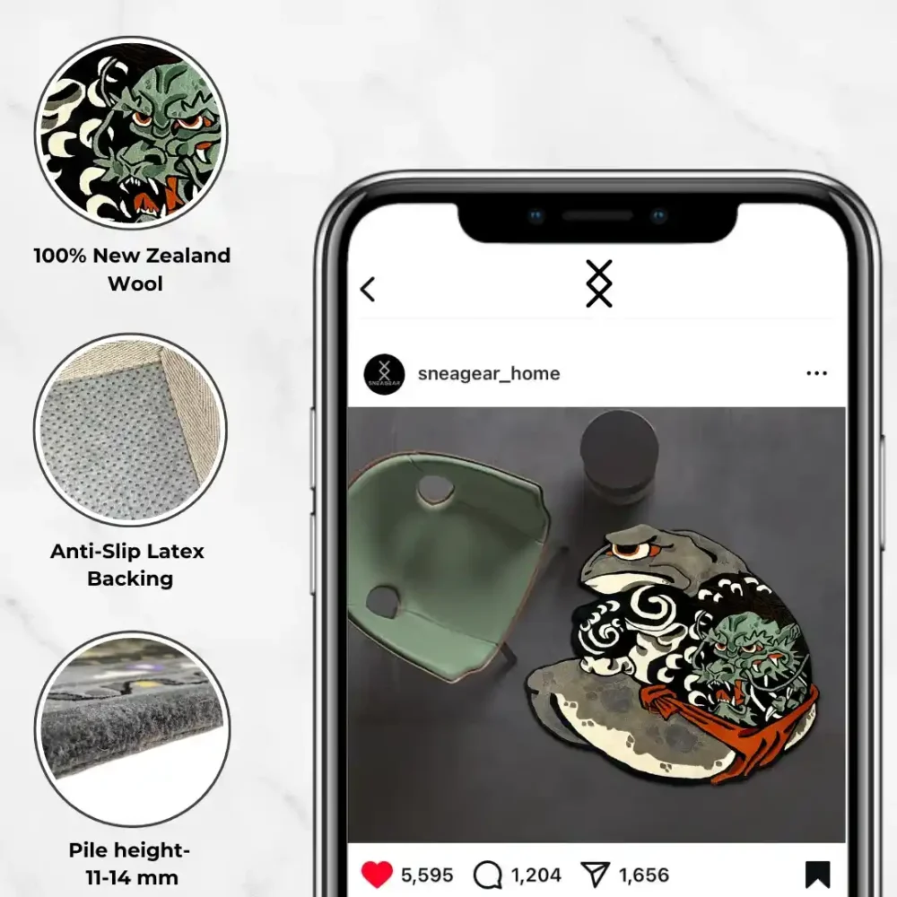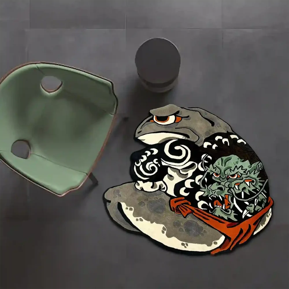 The Kaeru Musashi Rug stands for boldness and discipline. Our rug captures the beauty of the frog. This design adds strength, focus, and power to your home. Our Tattoo rugs combine both artistic art and modern style. Channel the spirit of a warrior—order your Kaeru Musashi Rug now!