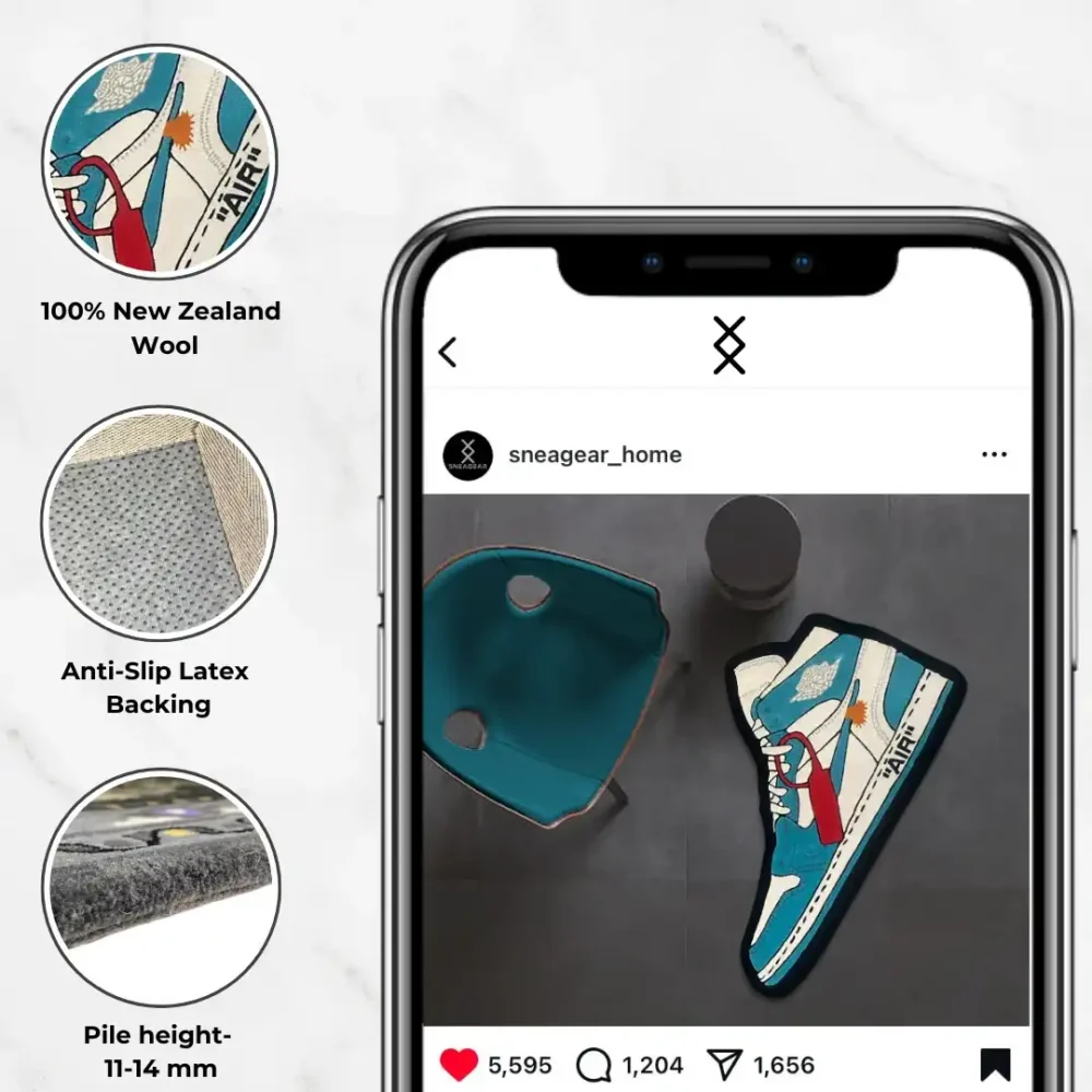 Upgrade your sneaker room with the Blue Off-White x Air Jordan 1 Sneaker Rug, inspired by one of the most iconic collaborations in sneaker history. This designer-inspired rug is perfect for sneakerheads, collectors, and streetwear enthusiasts looking to add some hypebeast energy to their space. Whether it’s for your bedroom, sneaker collection room, or gaming setup, this rug makes a bold statement.Key Features of the Air Jordan Rug