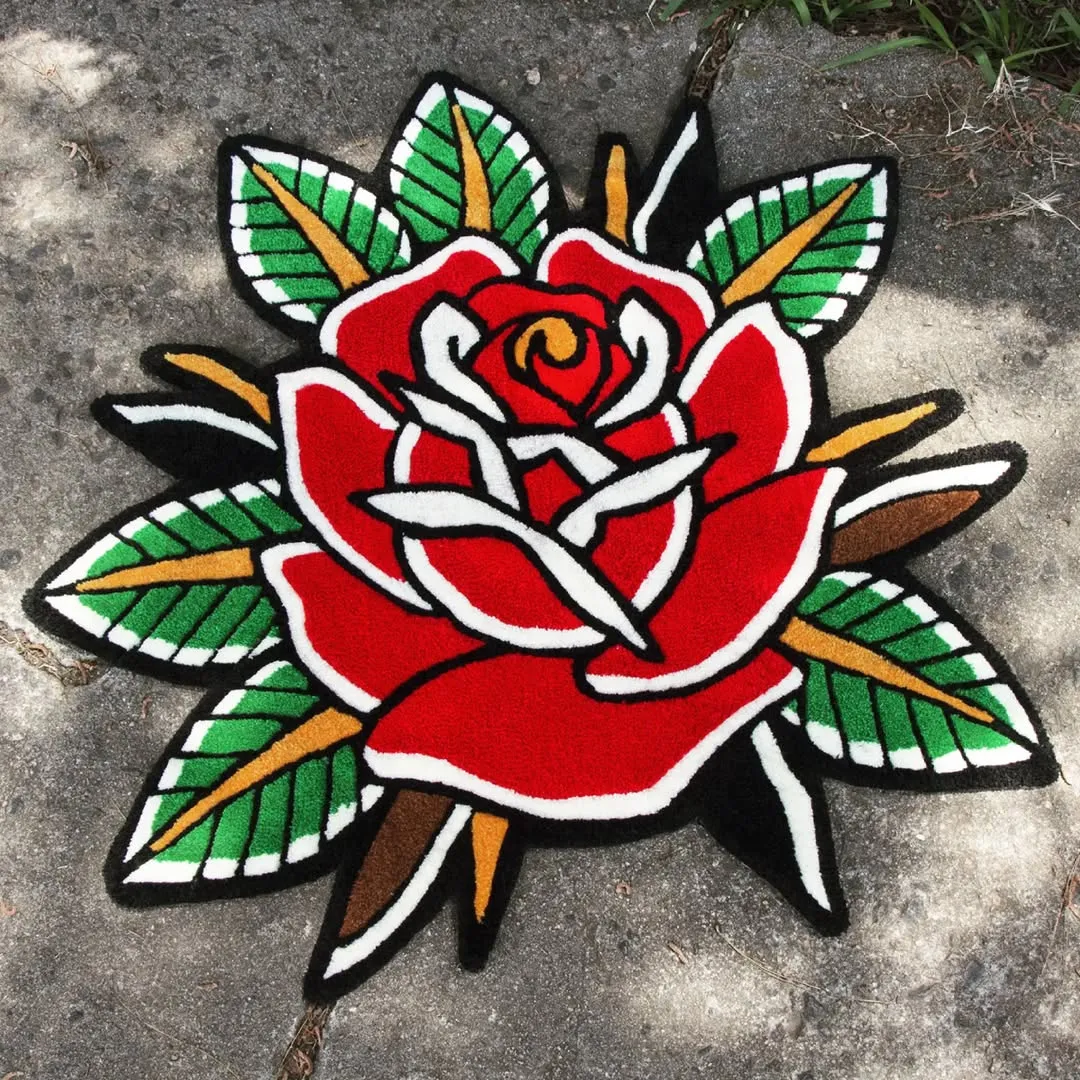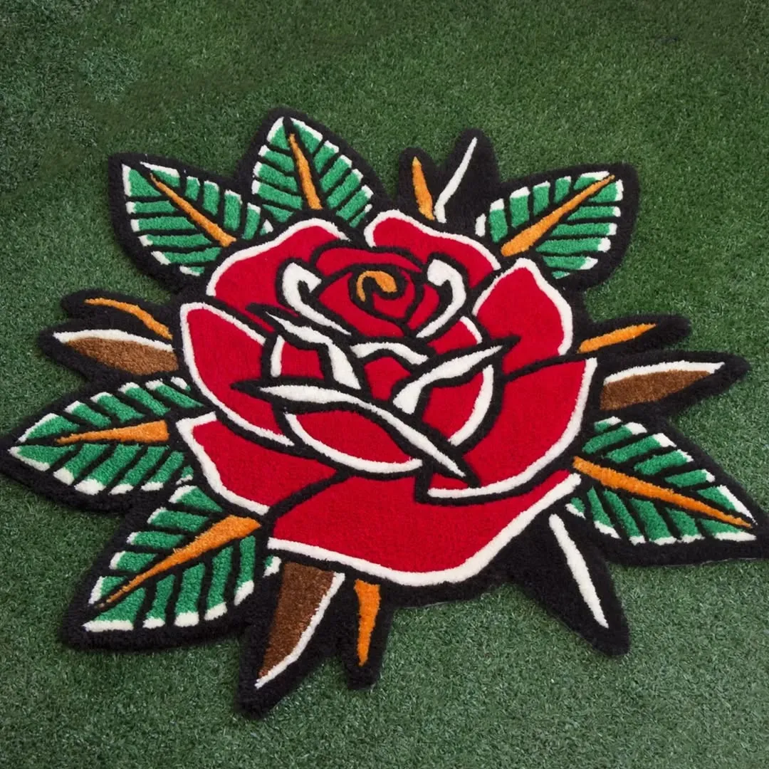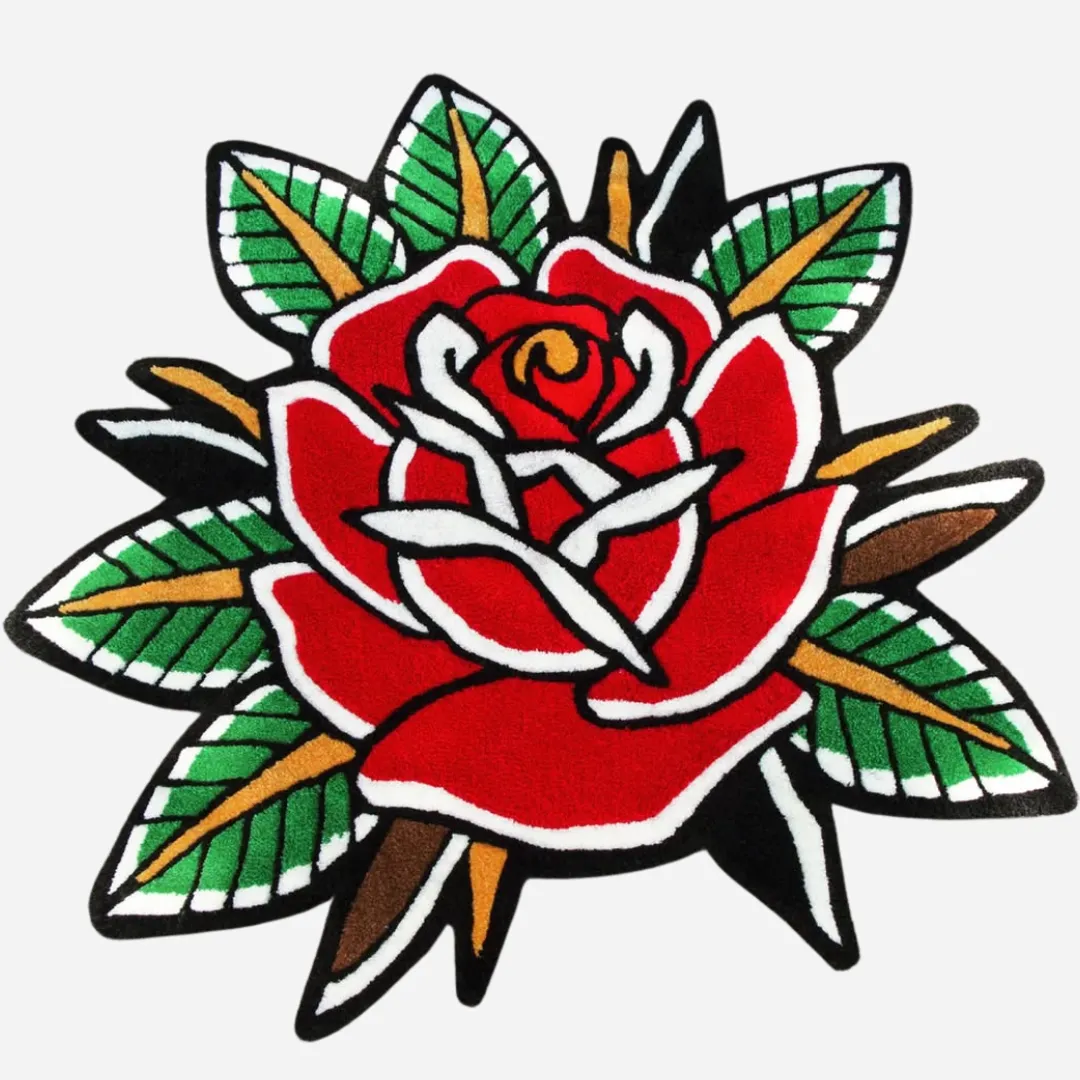 The Old School Rose Tattoo Rug has red petals, white details, and green leaves, just like a classic tattoo. The rug is shaped like a rose,and personality to your space. Just place it on the floor and let it shine on the wall. Our Tattoo rugs combine artistic art with modern style.Key Features of the School Rose Rug