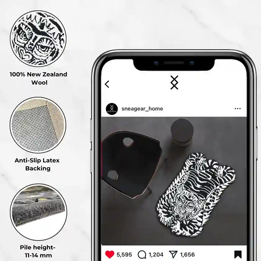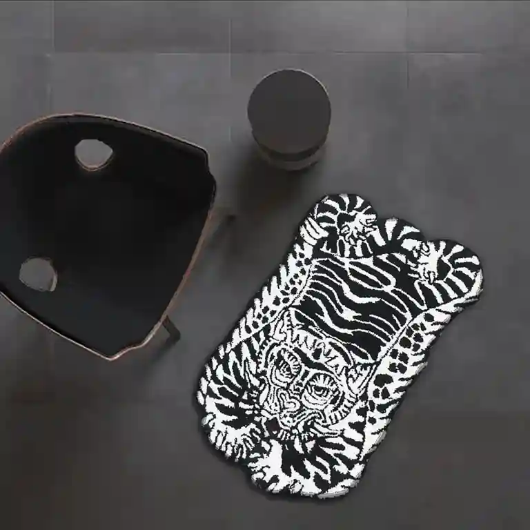 The White Tiger Area Rug features a pearl animal with a black ear, set on a soft base. This design adds a touch of strength and wisdom to your home. Our stripped tiger rug is a one of a kind creation.Key Features for Pearl Tiger Area Rug