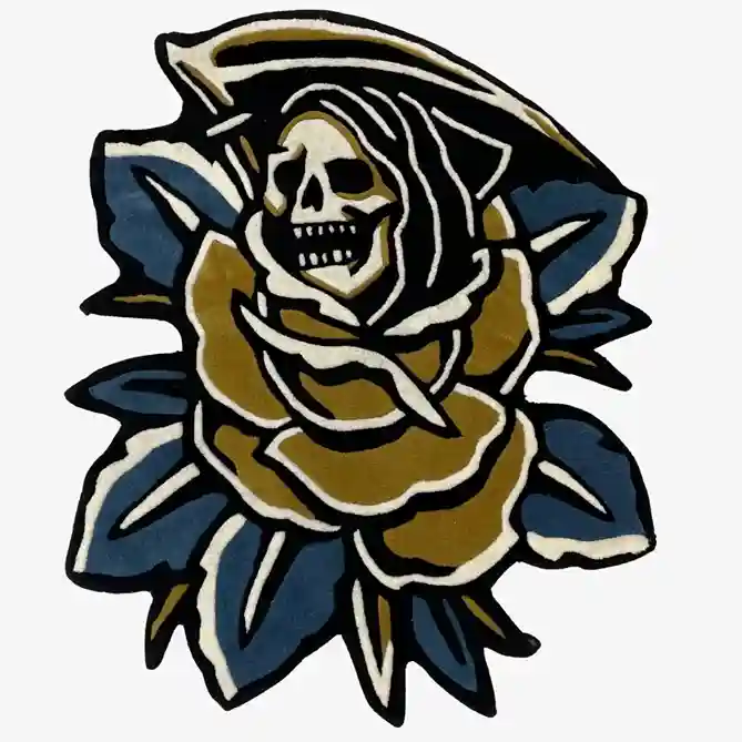 Home » Drippy Rugs » Tattoo Rugs » Reaper Rose