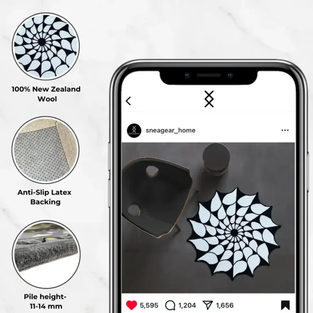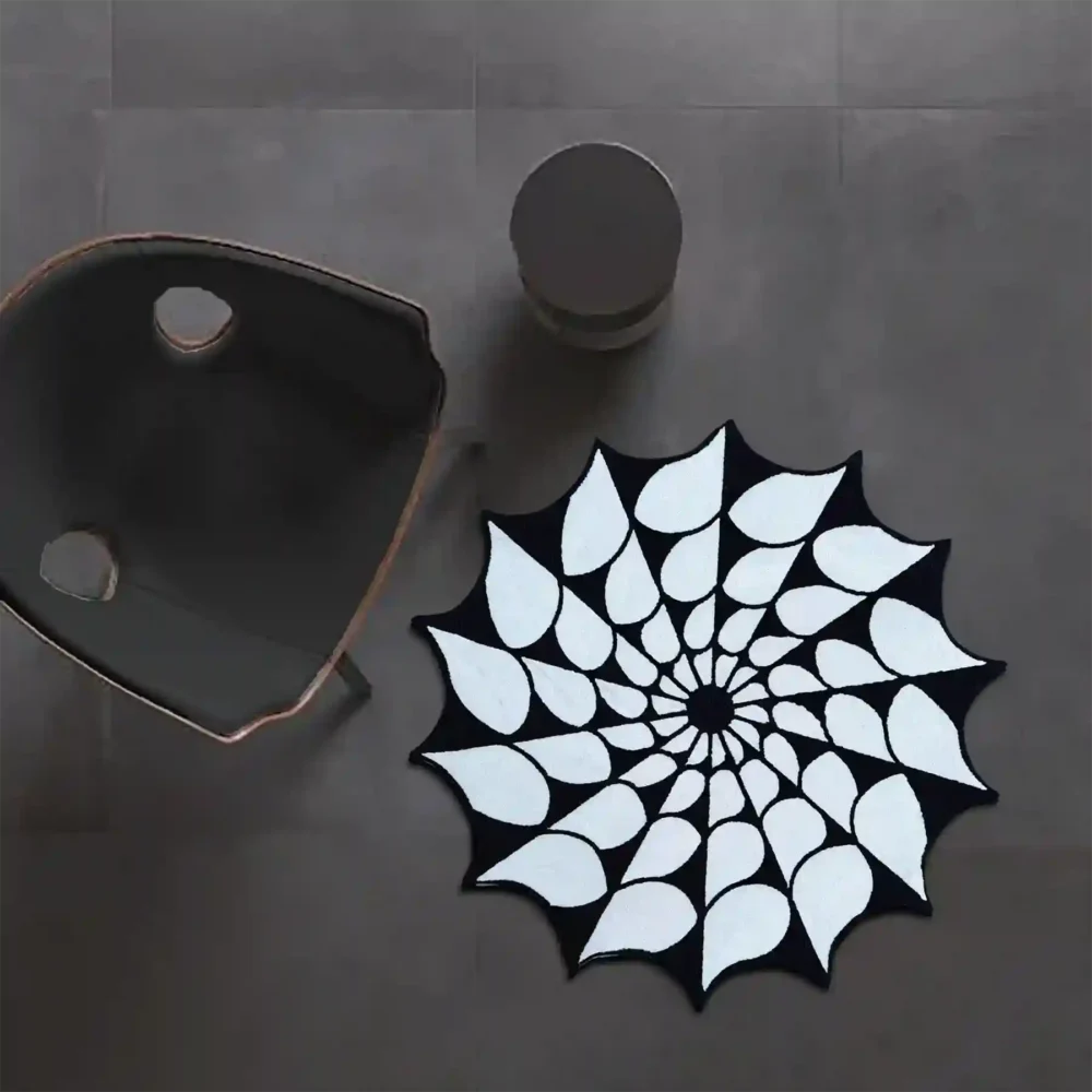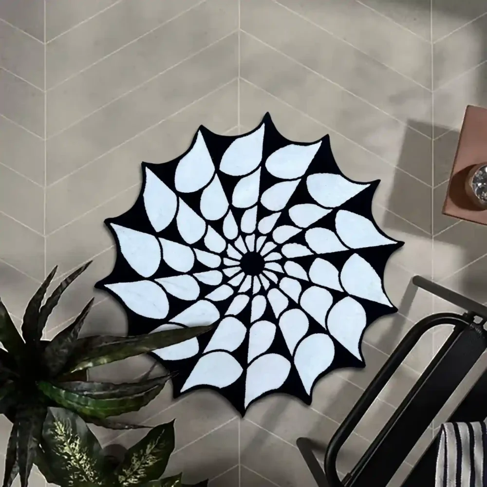 The Spiderweb Area Rug features dark-themed decor. Spiderweb rug features a dark gradient, creating a bold sense of mystery. This design adds a Gothic touch to your home. Our Tattoo rugs combine artistic art with modern style. Dare to be different—order the Spiderweb Area Rug today!