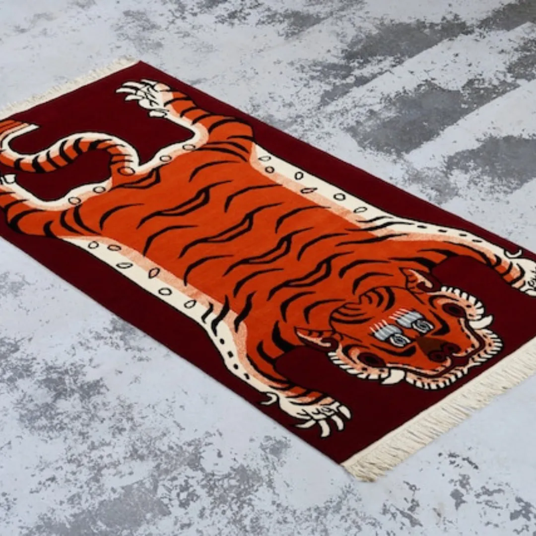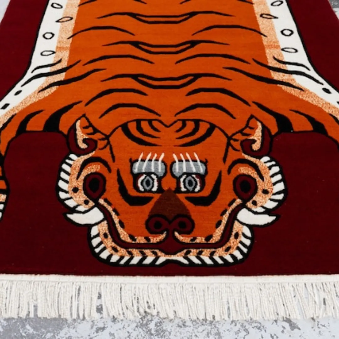 Here are some key features of this tiger rug;- Design: Inspired by the classic Tibetan tiger.