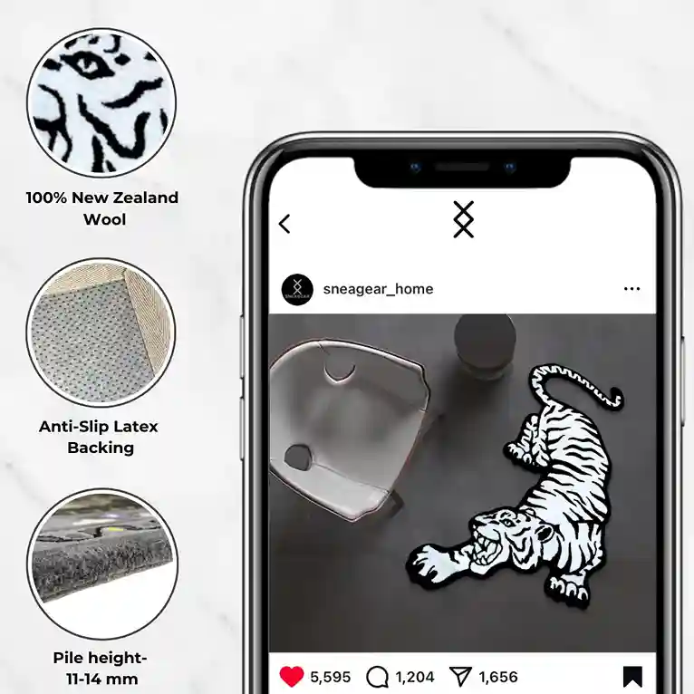 The White Bengal Tiger Area Rug features a white animal with a black ear, set on a soft base. This design adds a touch of strength and wisdom to your home. Our stripped tiger rug is a one of a kind creations.Key Features for Bengal Tiger Area Rug