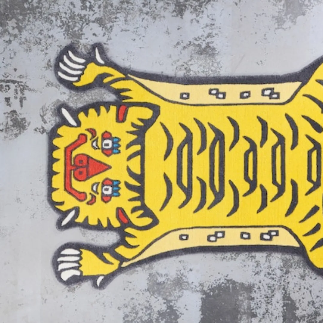 The Yellow Tiger Rug adds color and personality to any room. This tiger design features a bright yellow body, bold black stripes, and an expressive face. This modern version of a traditional Tibetan tiger rug has a cool, tattoo-style design. This tufted rug is soft, hand-made, and full of style. Place it in your favorite spot—like a creative corner, bedroom, Living room, or reading area.Key Features of Modern Tiger Rug