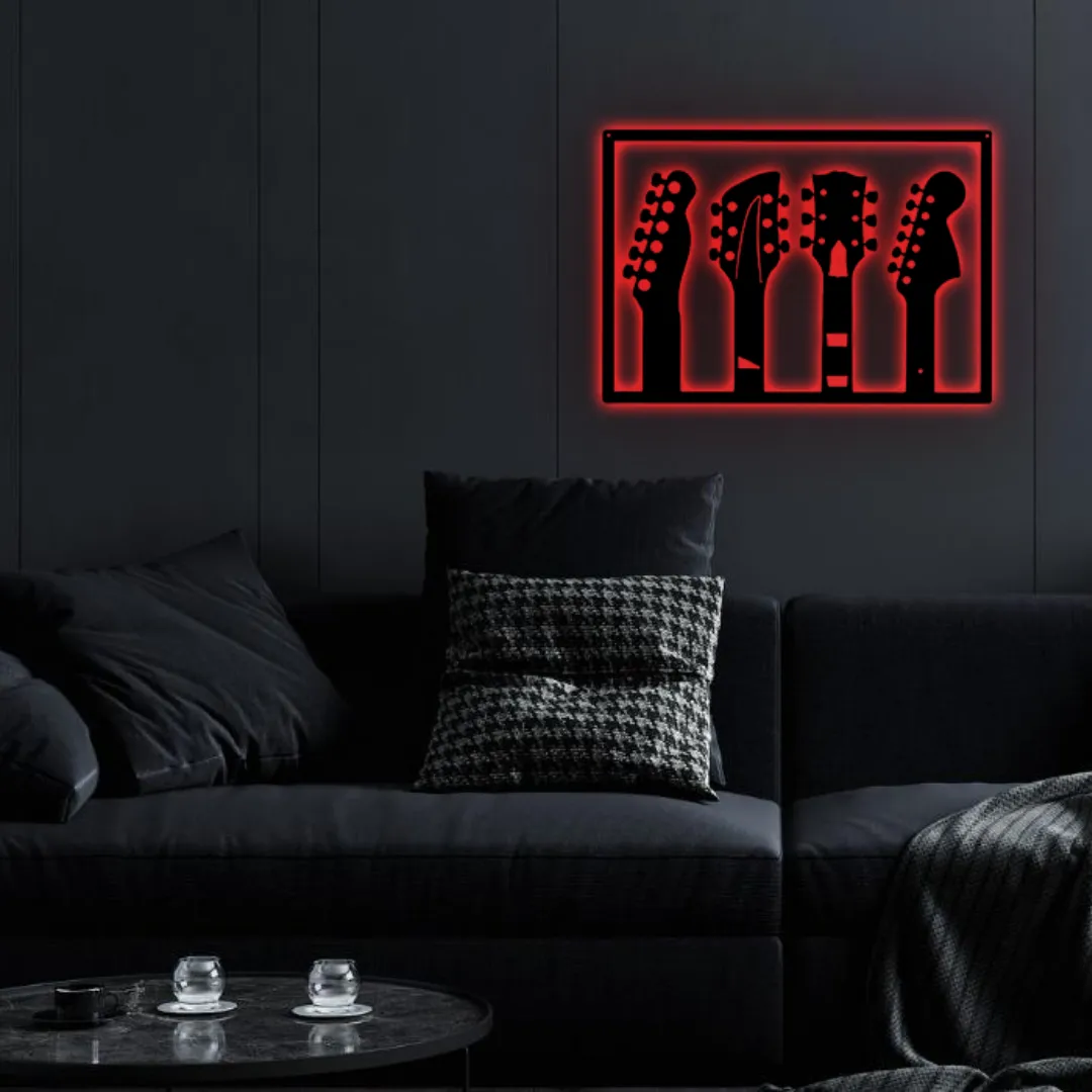 Rock out with Sneagear’s Guitar Headstock Silhouette. This edgy weatherproof metal wall decor, featuring LED RGB lighting, adds a cool element to any room. Perfect for music studios, bedrooms, or spaces where you want to showcase your love for guitar and rock ‘n’ roll  – INSTALL IT IN NO TIME!