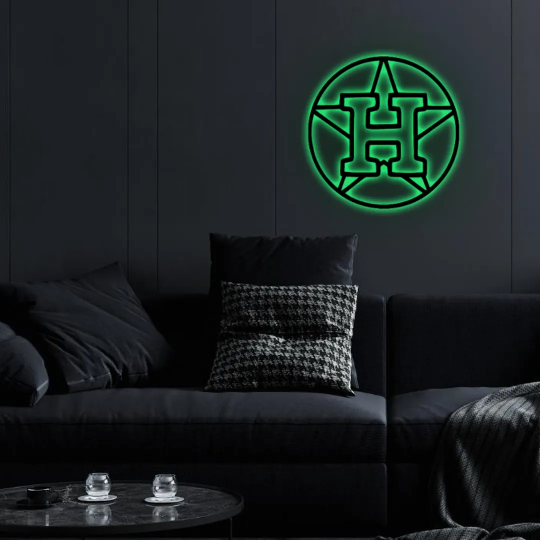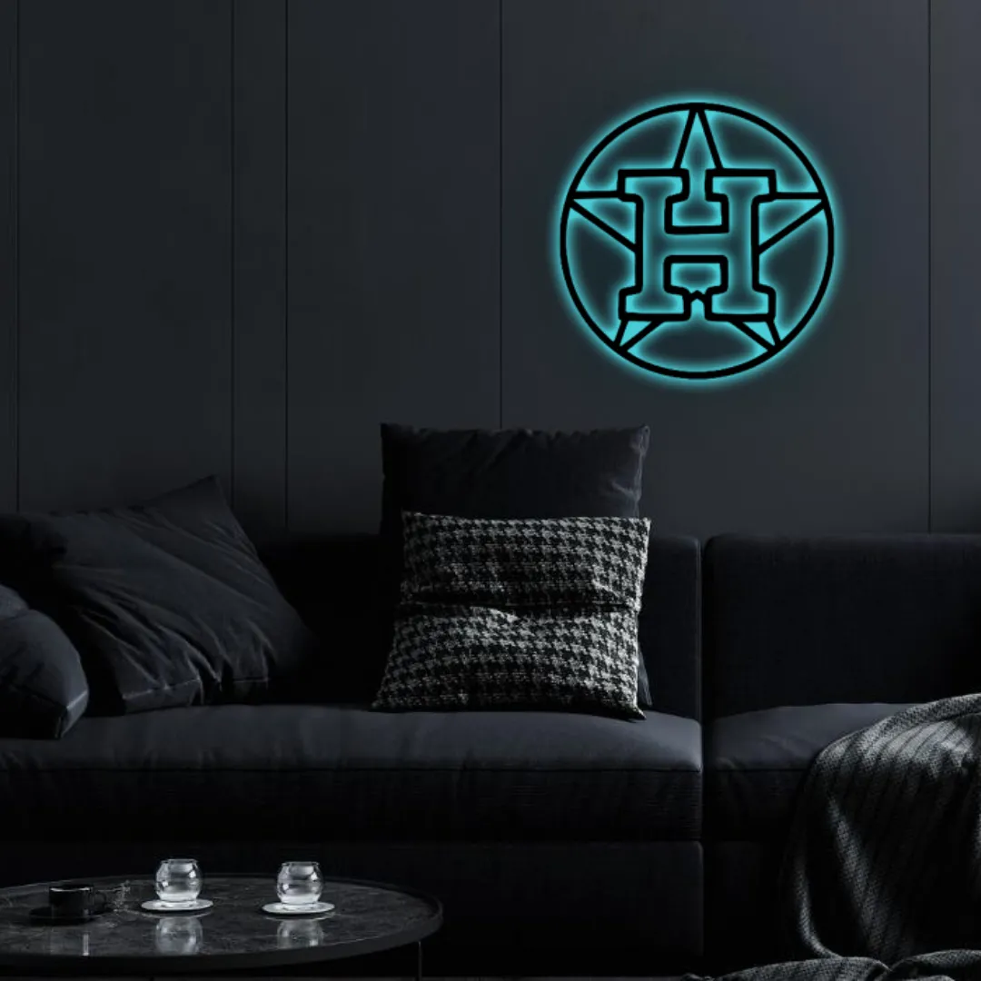 Transform your room instantly with Sneagear’s Weatherproof Houston Astros Logo Black Metal Sign, enhanced by vibrant RGB lights.