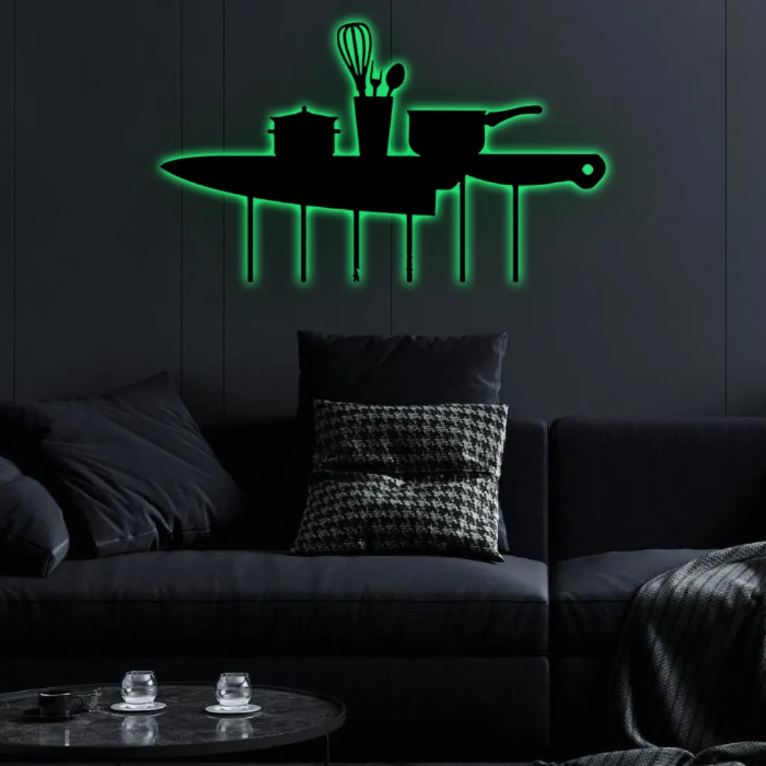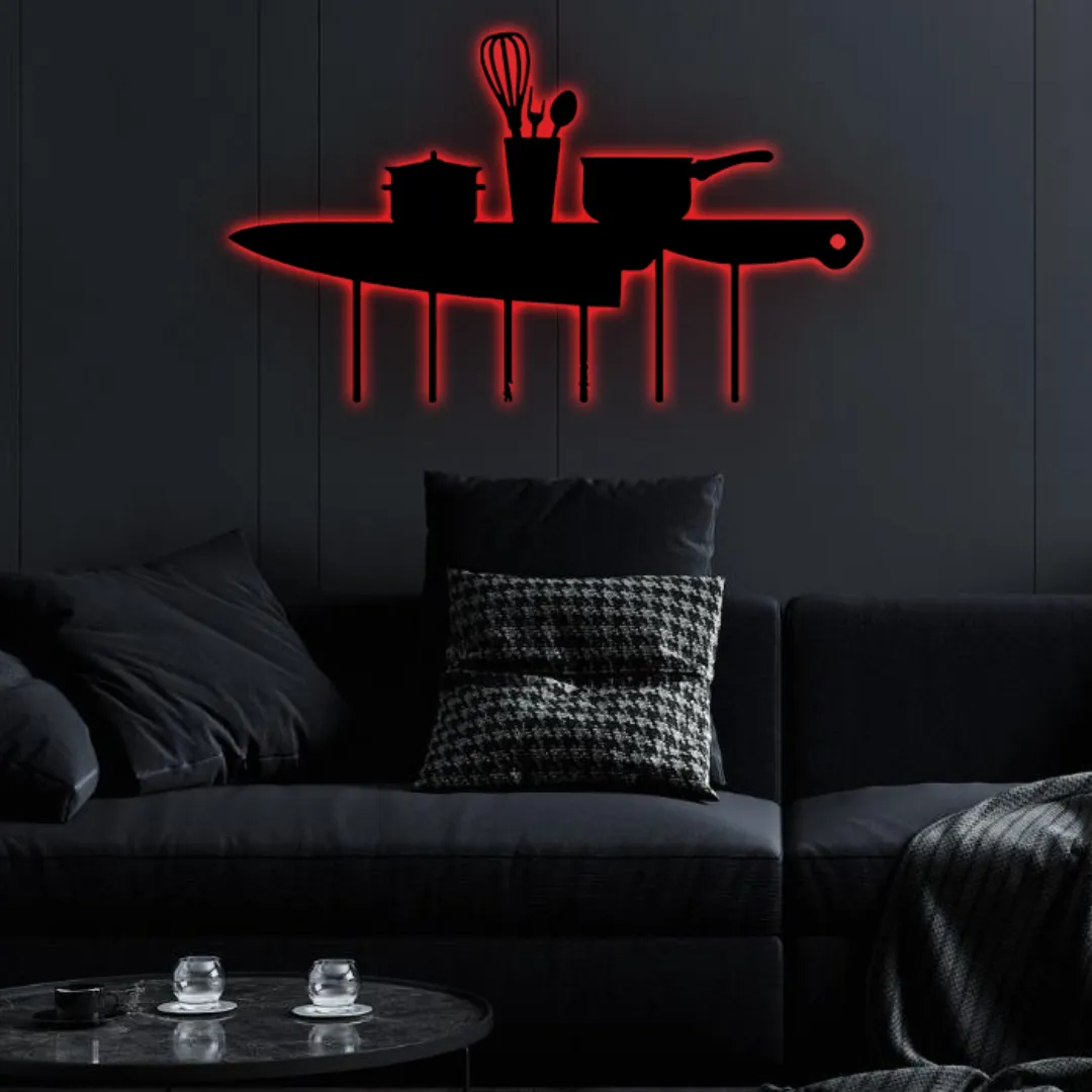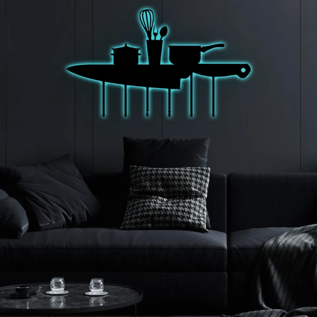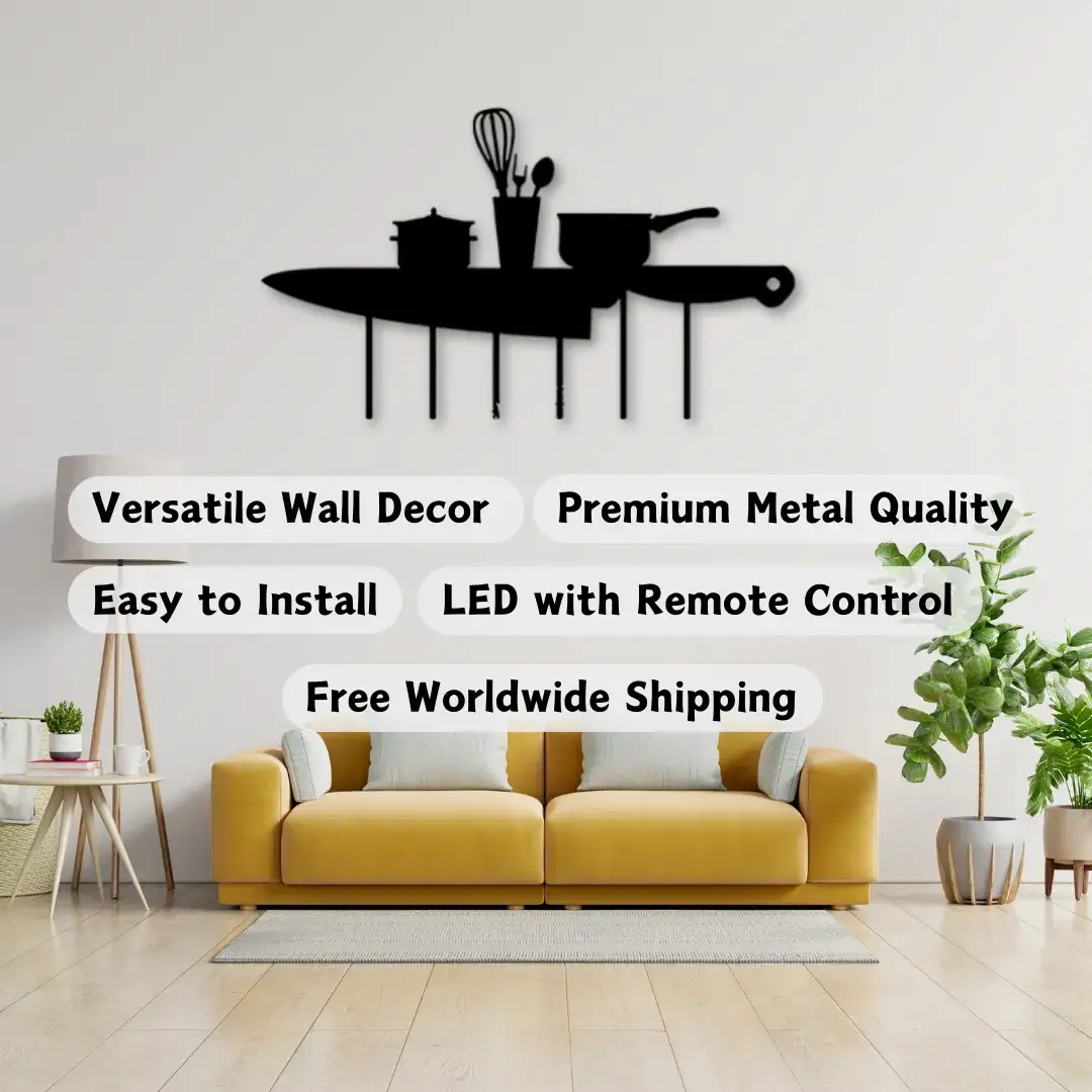 Bring home rustic, weatherproof kitchen decor that suits both modern and contemporary styles with this Kitchen Knife Black Metal Kitchen Wall Decor featuring RGB lighting. It pairs beautifully with: