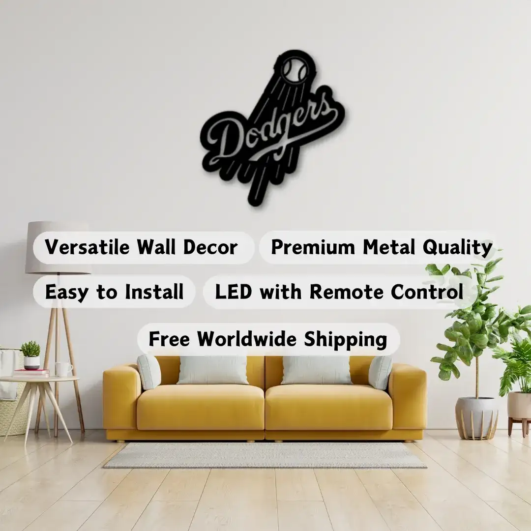 Transform your room instantly with Sneagear’s Weatherproof Los Angeles Dodgers Logo Black Metal Sign, enhanced by vibrant RGB lights.