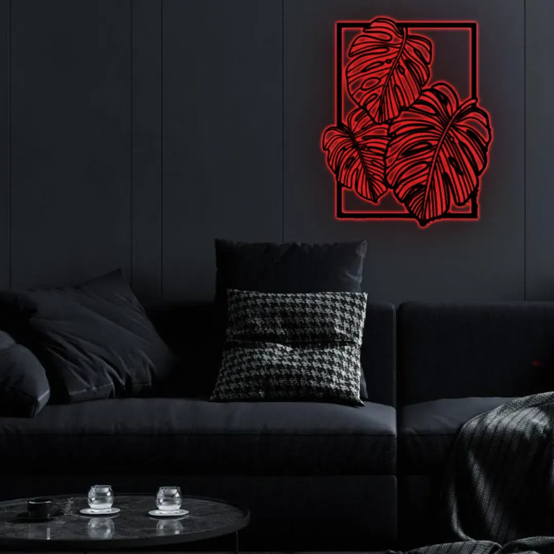 Vibe out instantly with our rustic, weatherproof Monstera Leaf Abstract Black Wall Decor with RGB Lighting, perfect for enhancing your modern living room decor.