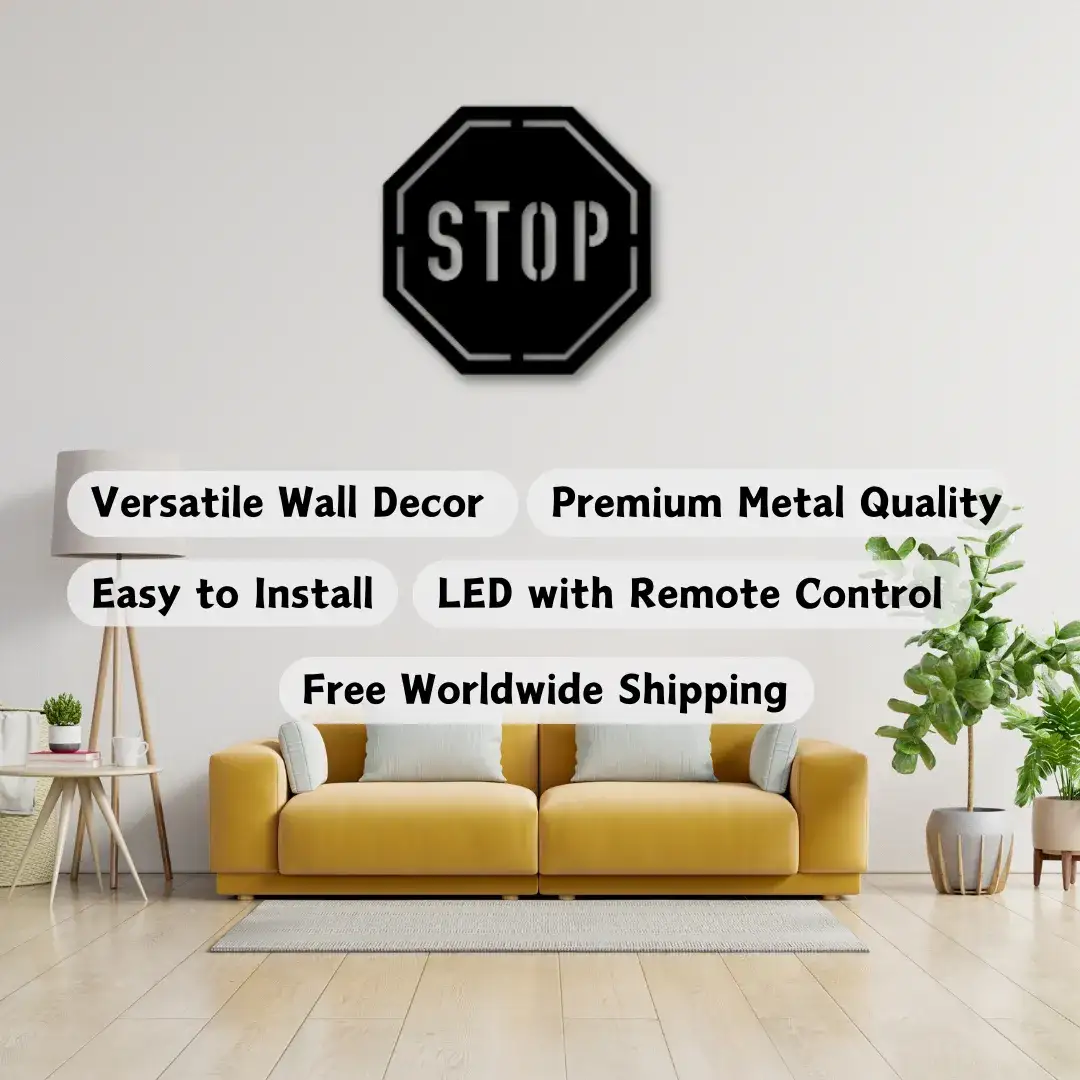 Vibe out instantly with our rustic, weatherproof Stop Sign Black Abstract LED Wall with RGB Lighting, perfect for enhancing your modern living room decor.